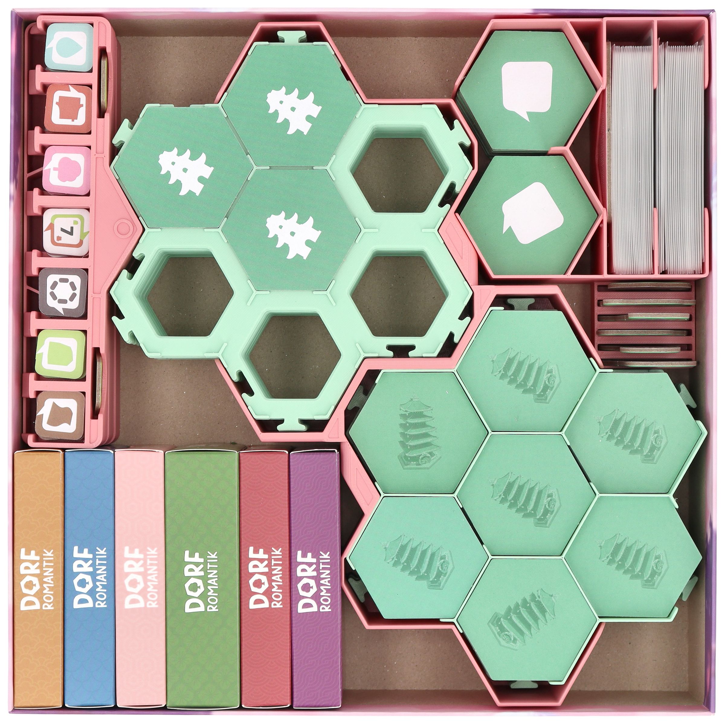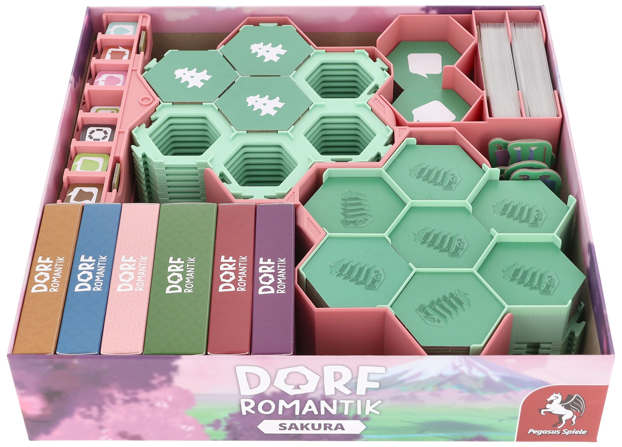 - The insert provides space for all contents from the core game expansion “Dorfromantik: Sakura”.