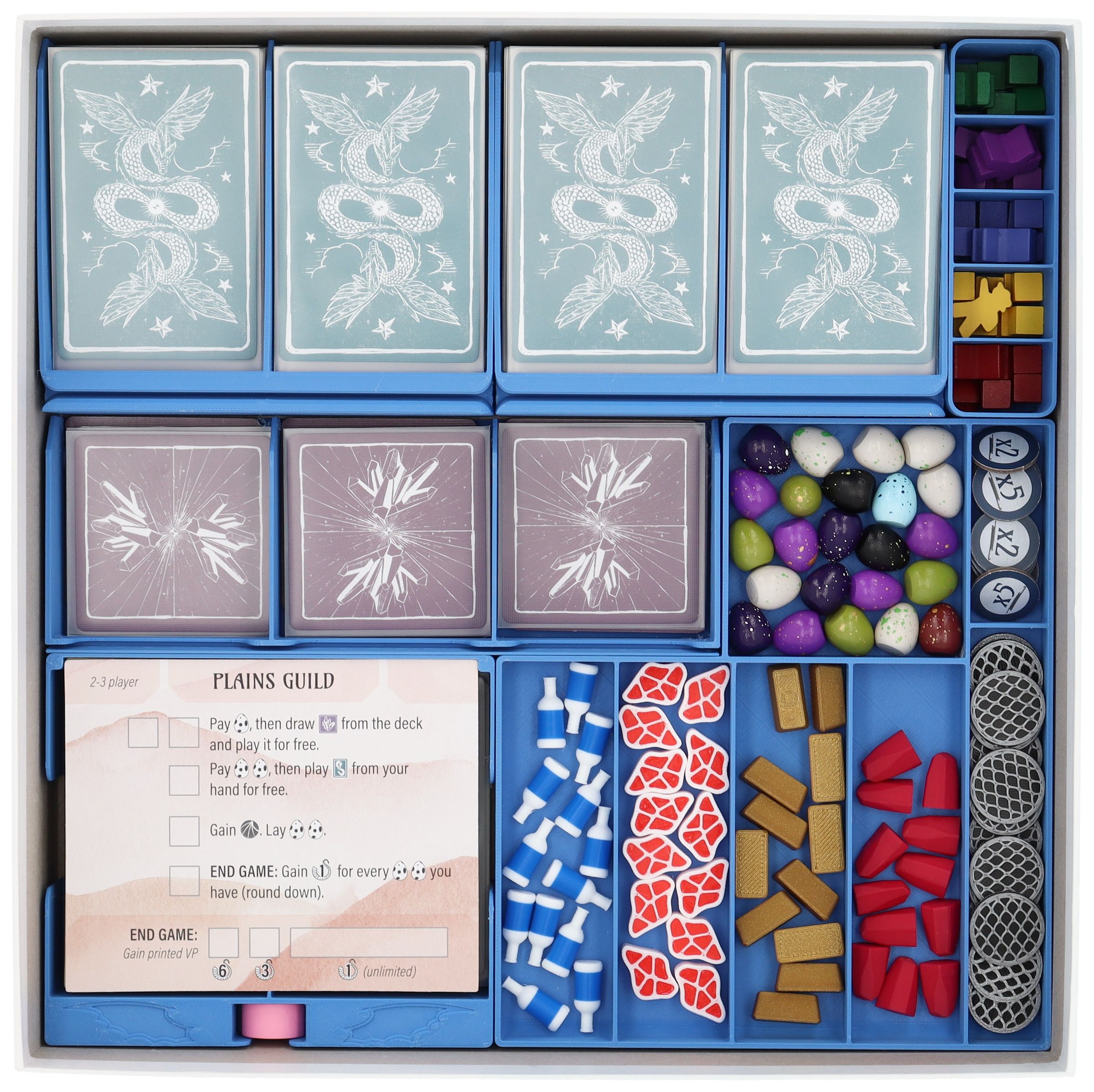 - This Organizer made of robust plastic fits exactly into the original Wyrmspan core game box (dimensions of the organizer: approx. 286 mm x 286 mm x 59 mm).