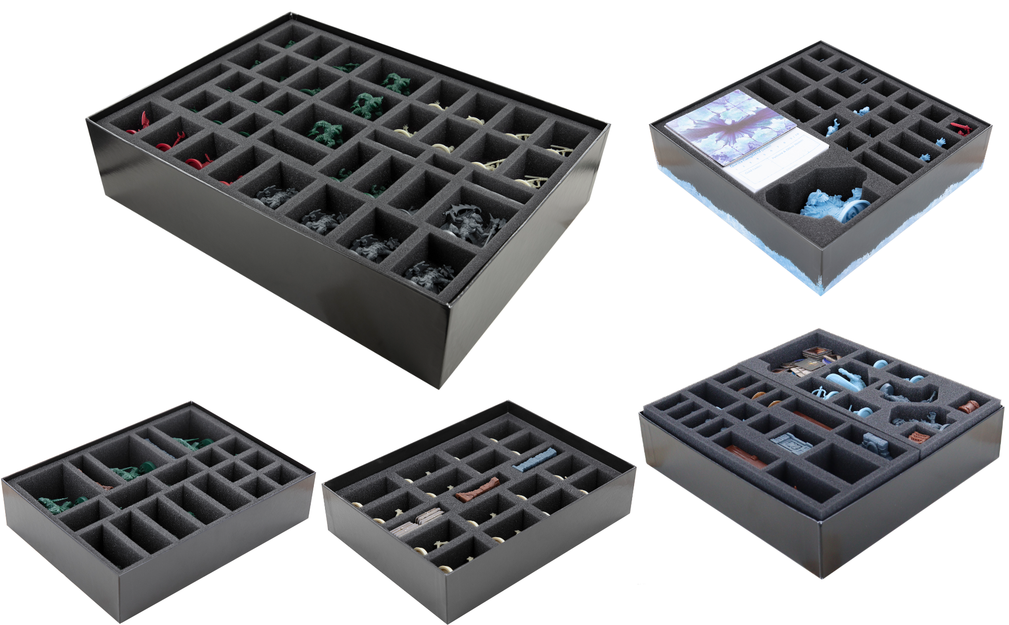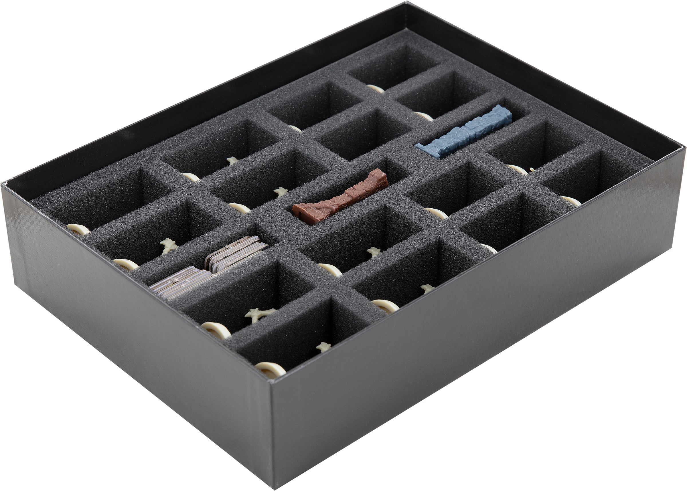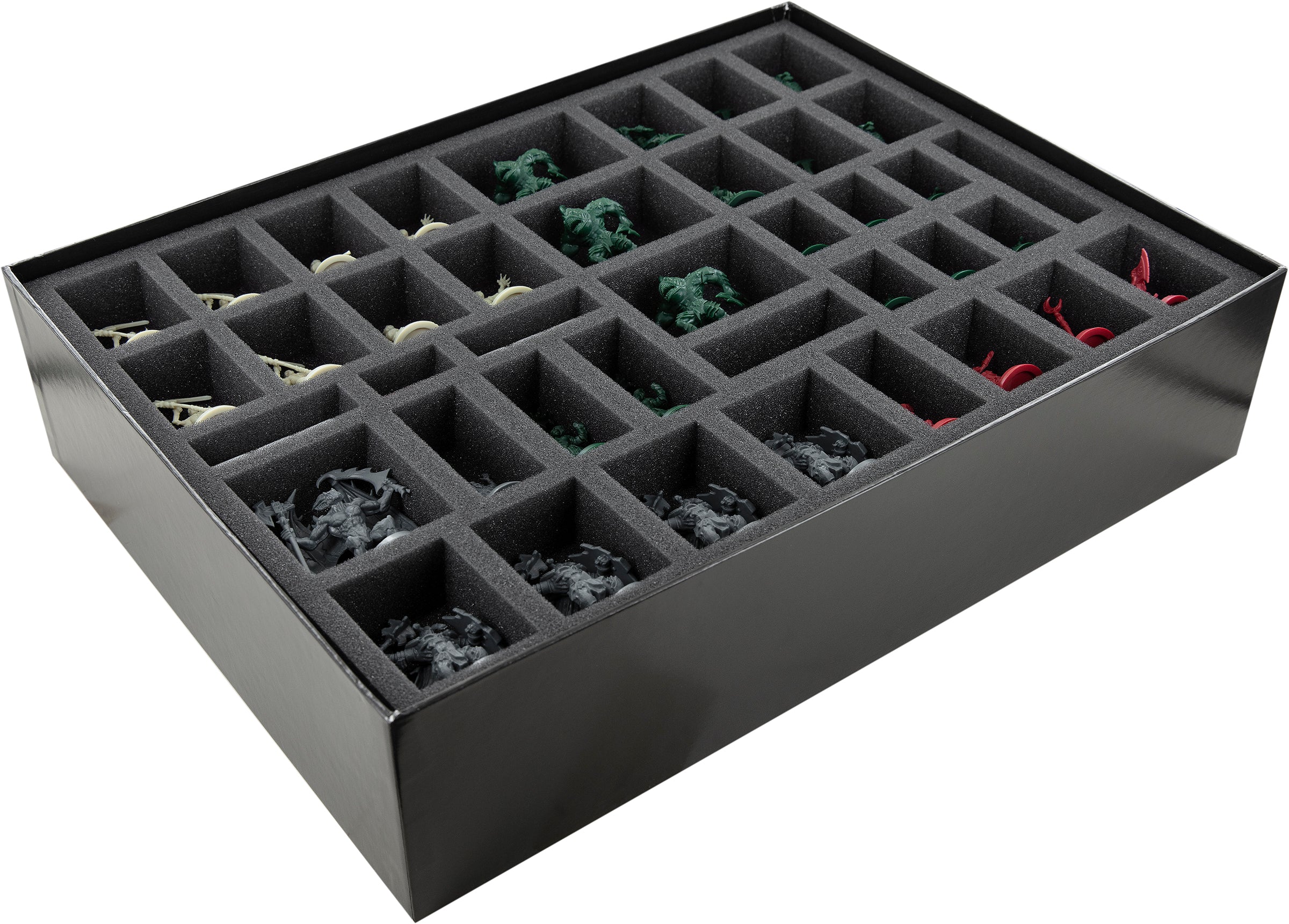 - Whether miniatures from the core game or expansions, the foam trays offer your figures and terrain pieces reliable protection, thanks to the custom-fit compartments.