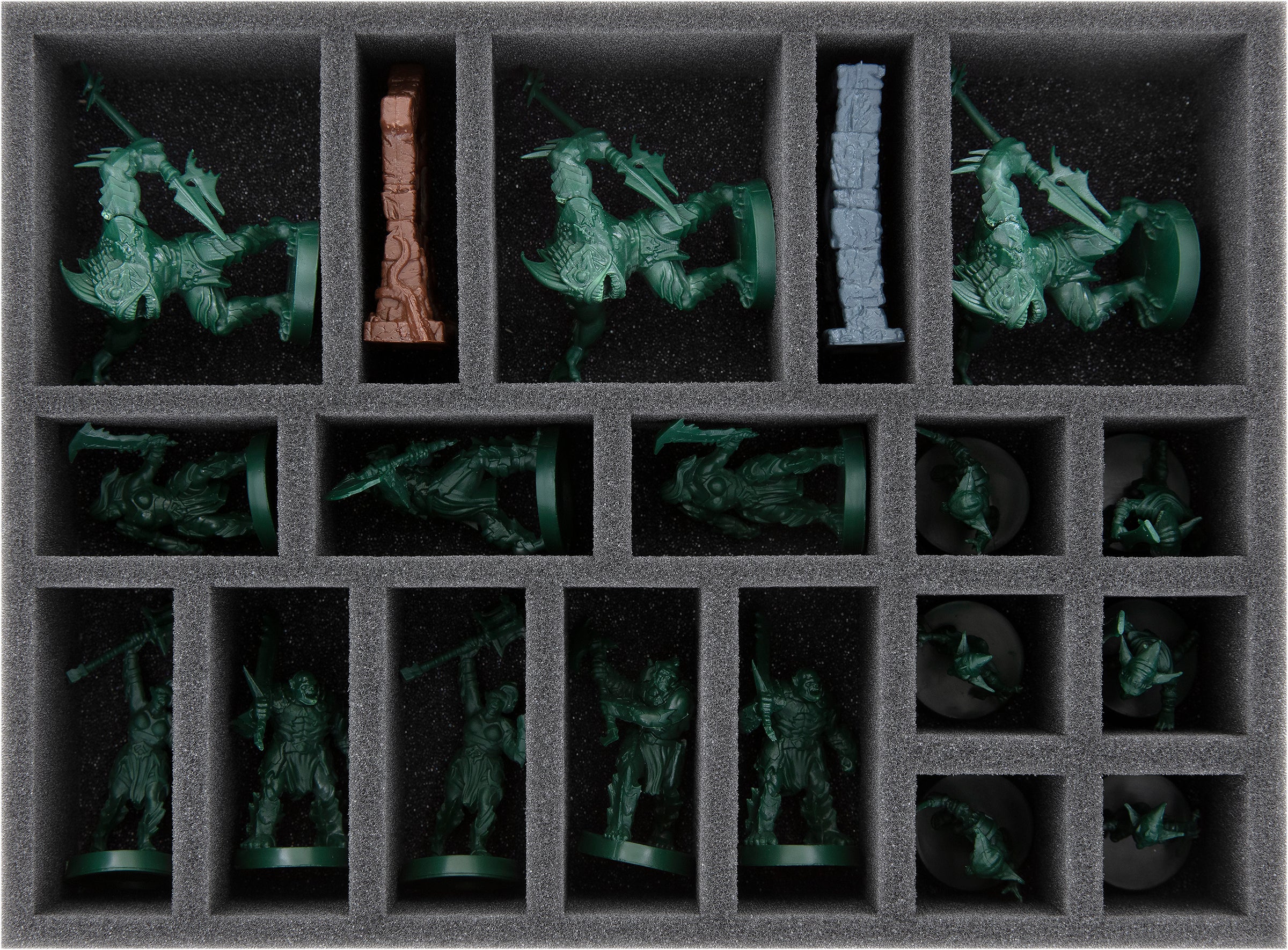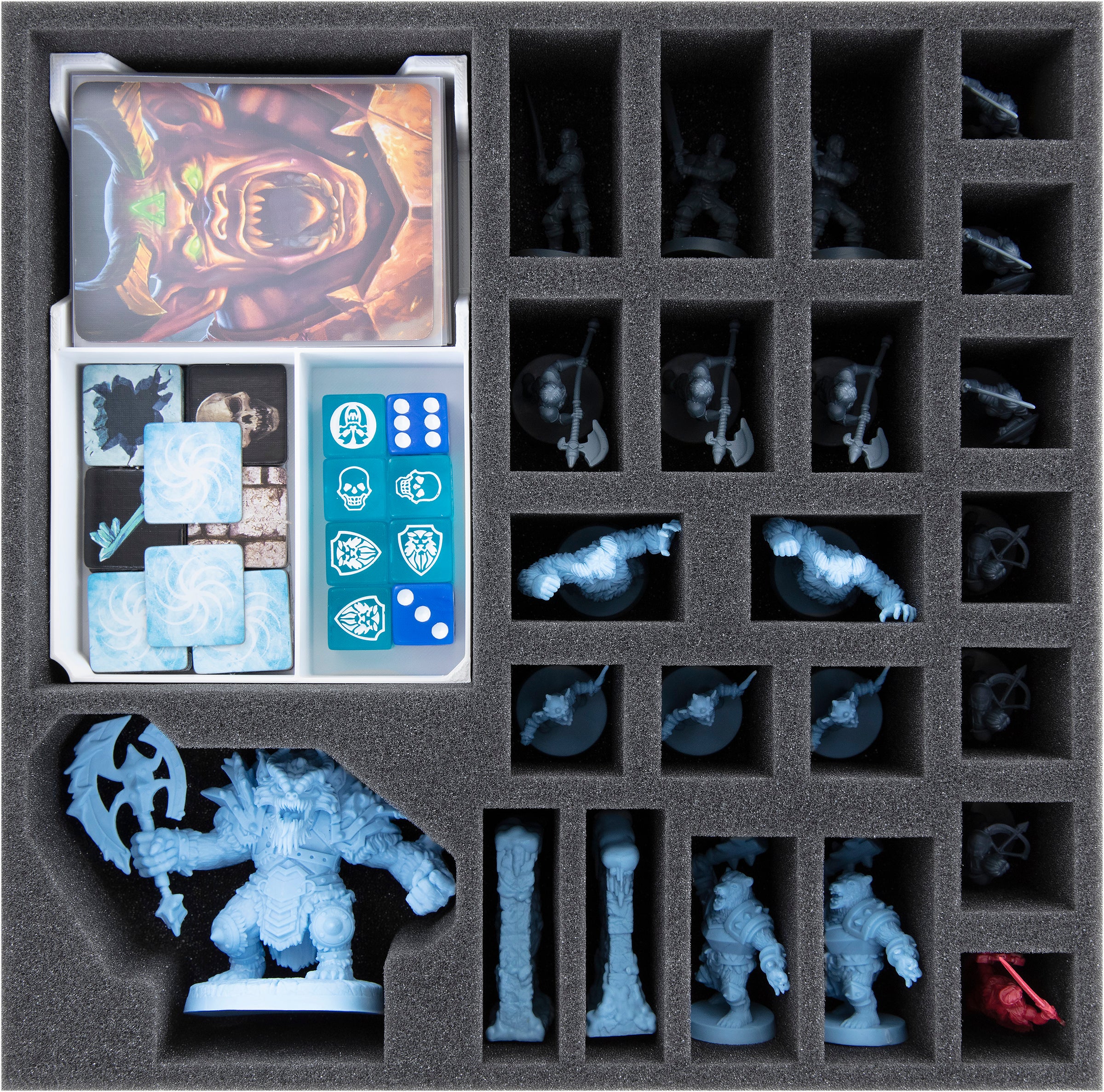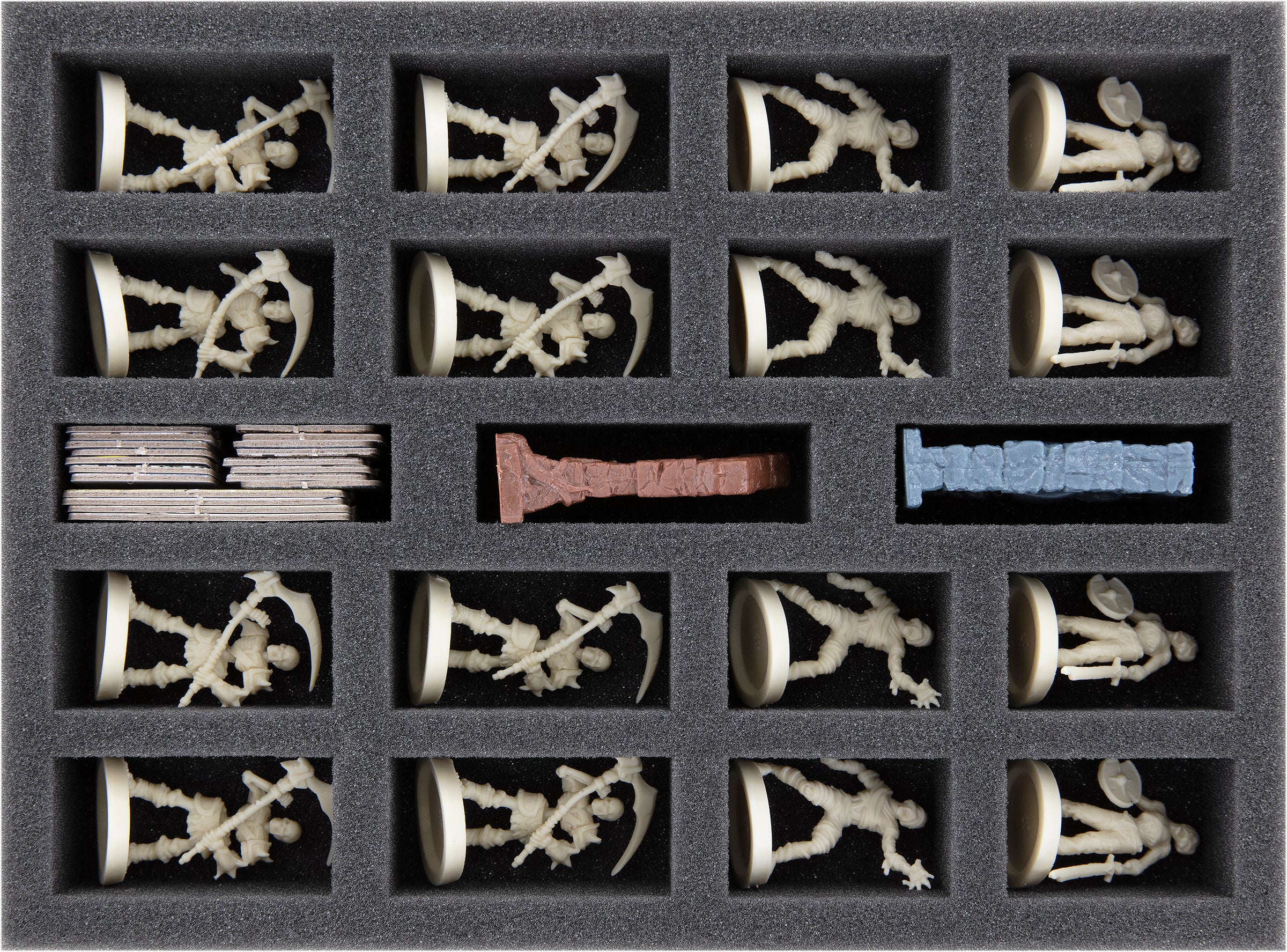 - Whether miniatures from the core game or expansions, the foam trays offer your figures and terrain pieces reliable protection, thanks to the custom-fit compartments.