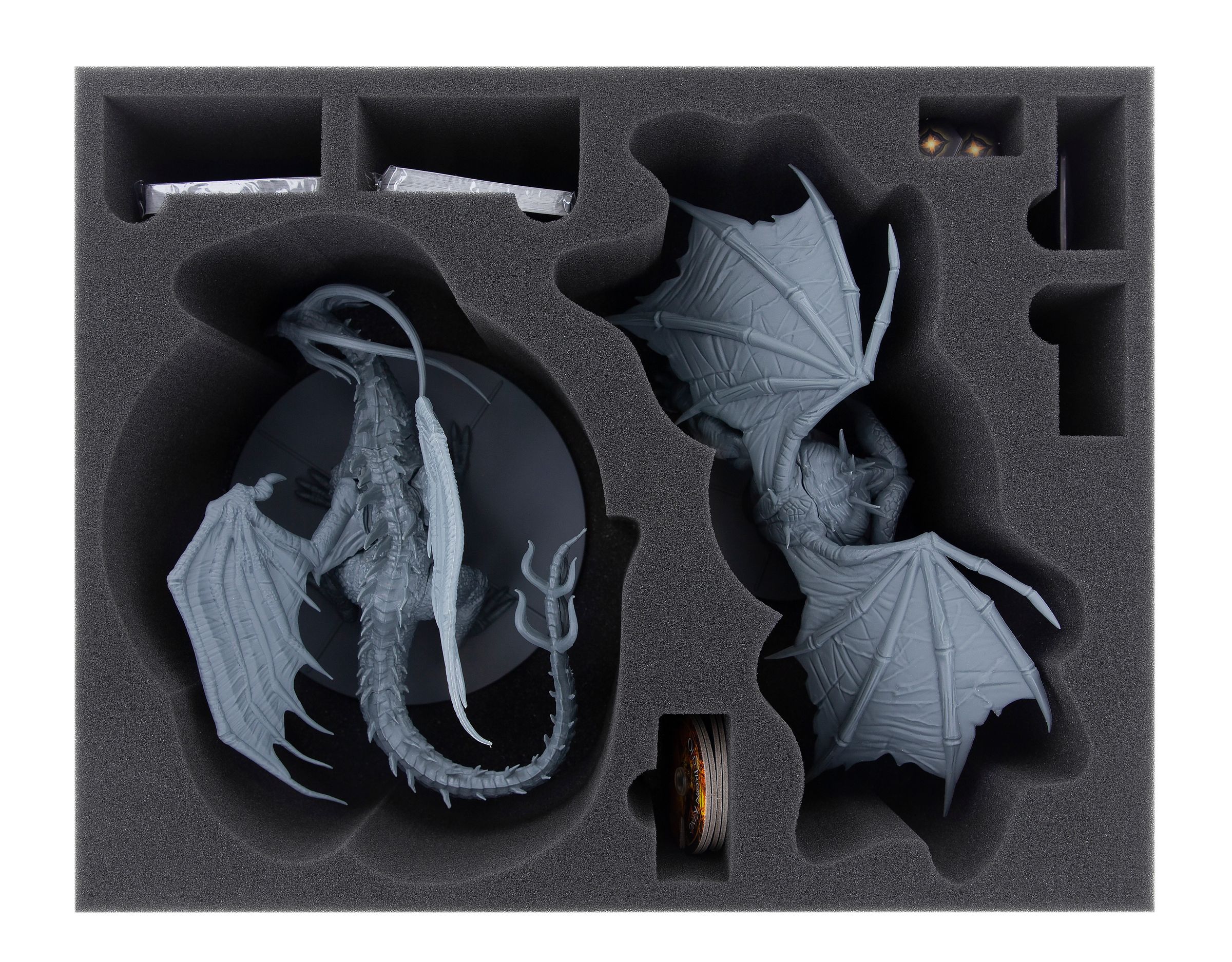 One is the last of the ancient Everlasting Dragons, the other a power-hungry, condemned emperor and now a horned demon with giant wings. With this foam set, these two impressive mega boss miniatures get the protection they deserve.