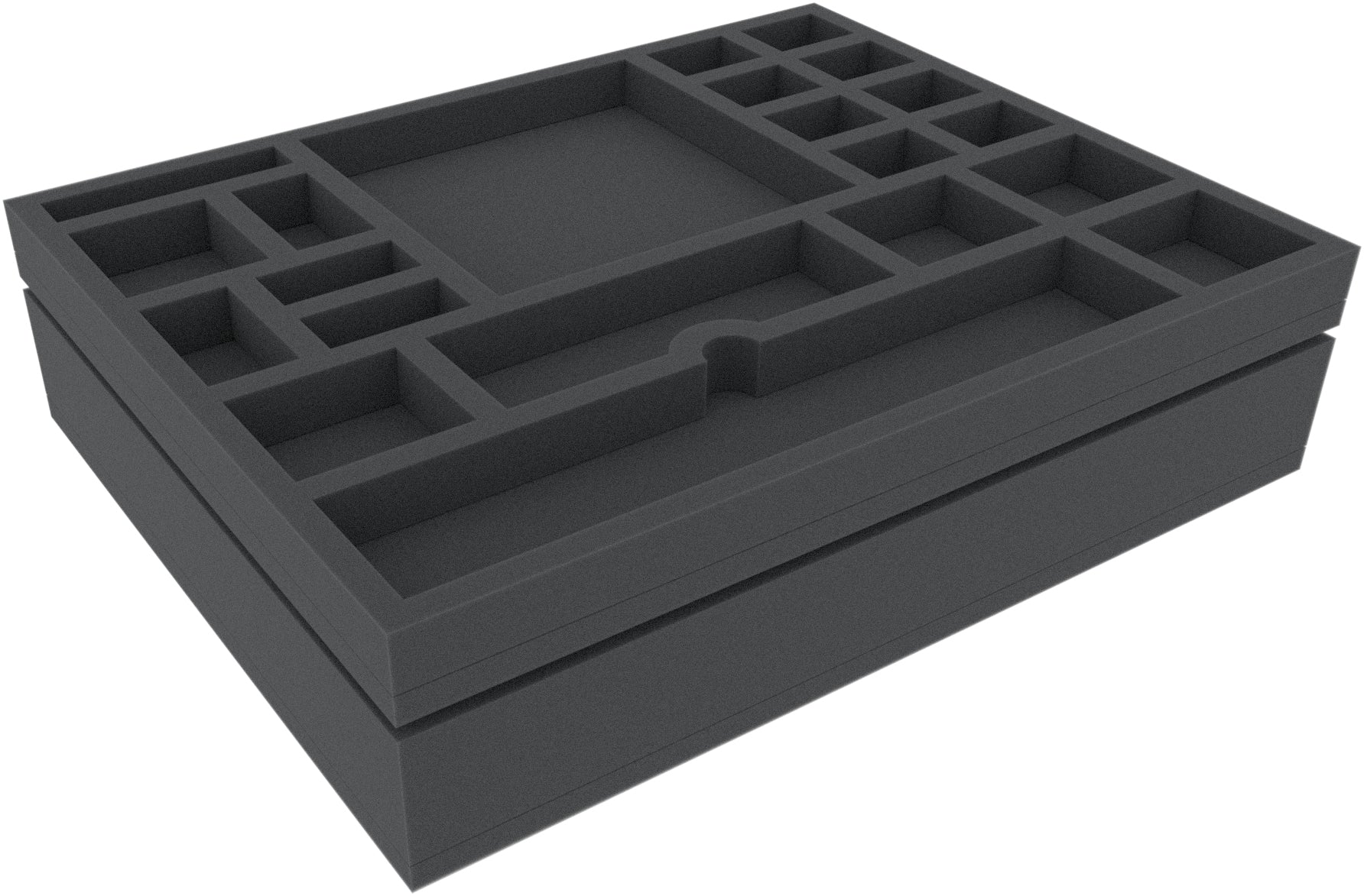 • 1 foam tray with 55 compartments for plastic miniatures, cards and tokens (CYMEMT055BO)
