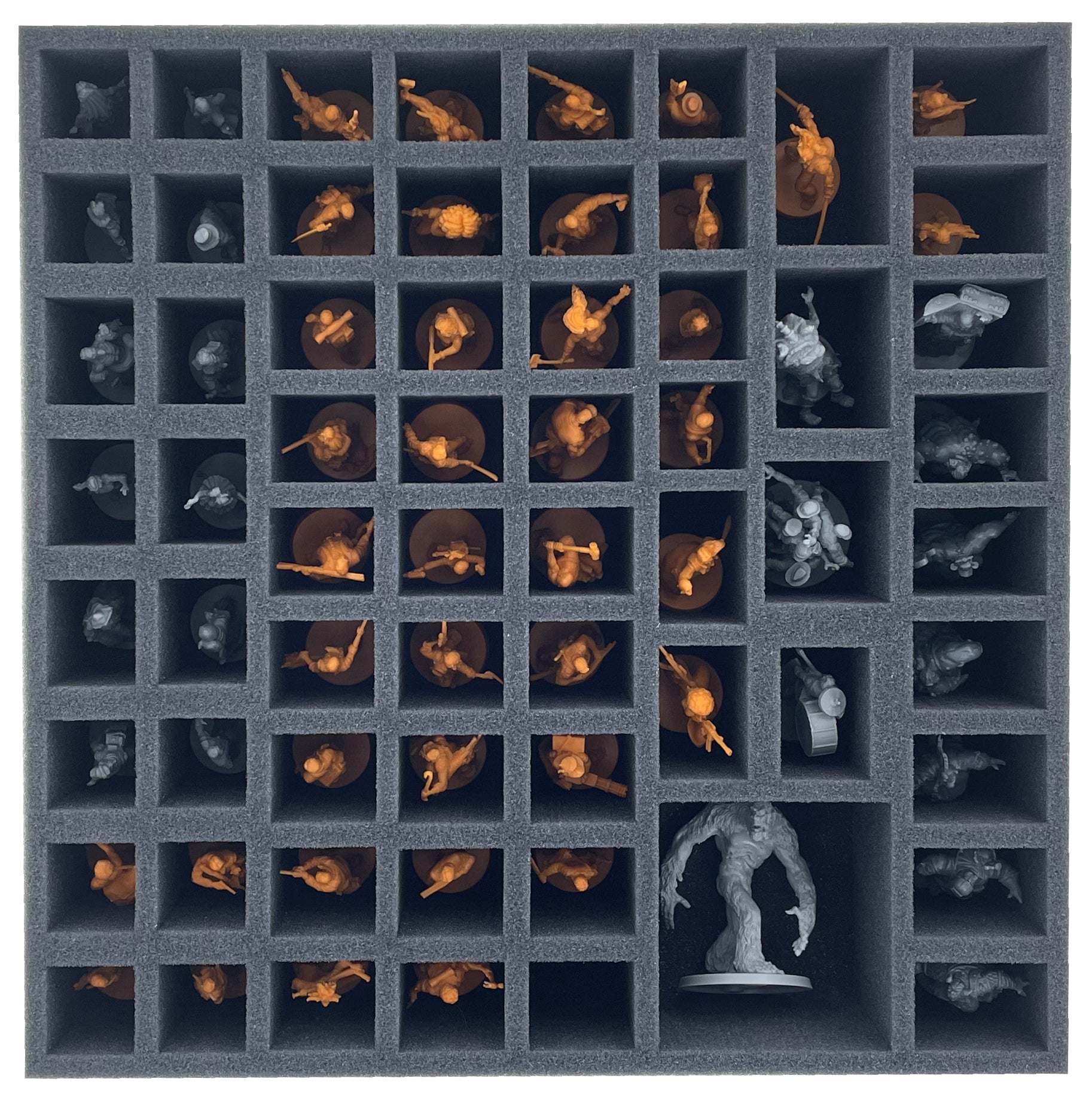 Thanks to the custom-fit compartments, the miniatures have a tight fit. Even if a Zombie nibbles at you during transport, the figures do not slip and remain in place. The soft, fine-pored foam protects filigree details from snapping off and the colors of your painted models from scratches and paint abrasion.