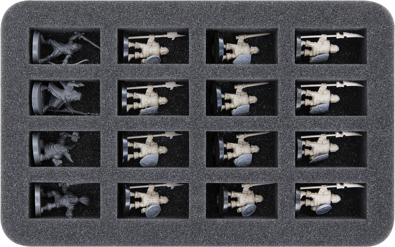 The 3 Half-Size foam trays provide your models with a safe haven – each miniature has its own, custom-fit cut compartment. Embedded in soft foam, even delicate details like the tails of the Skaven or the weapons of your heroes are reliably protected. Painted figures remain free from scratches and abrasion.