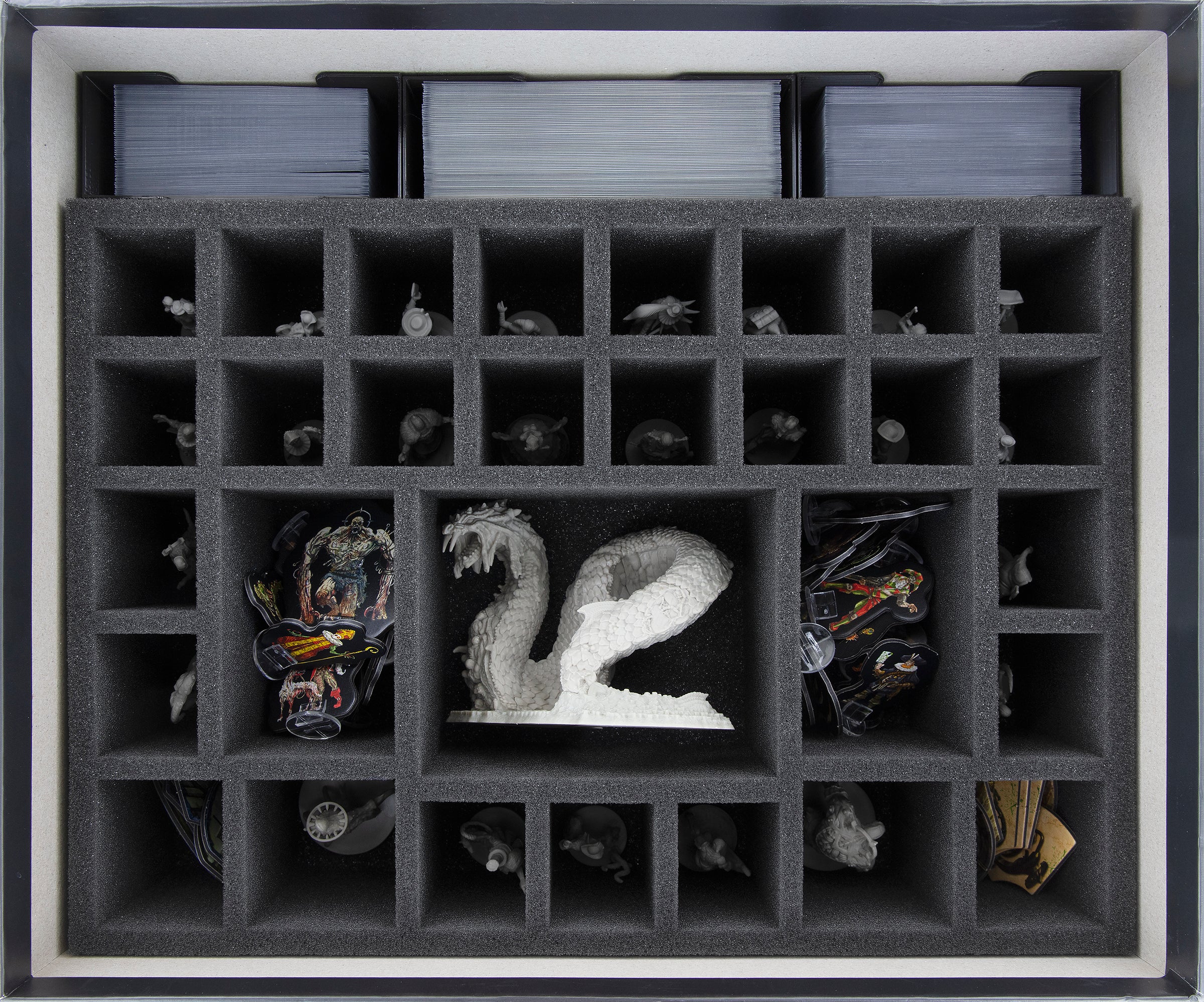 After your miniatures are accommodated, the next step is to take care of your game materials.