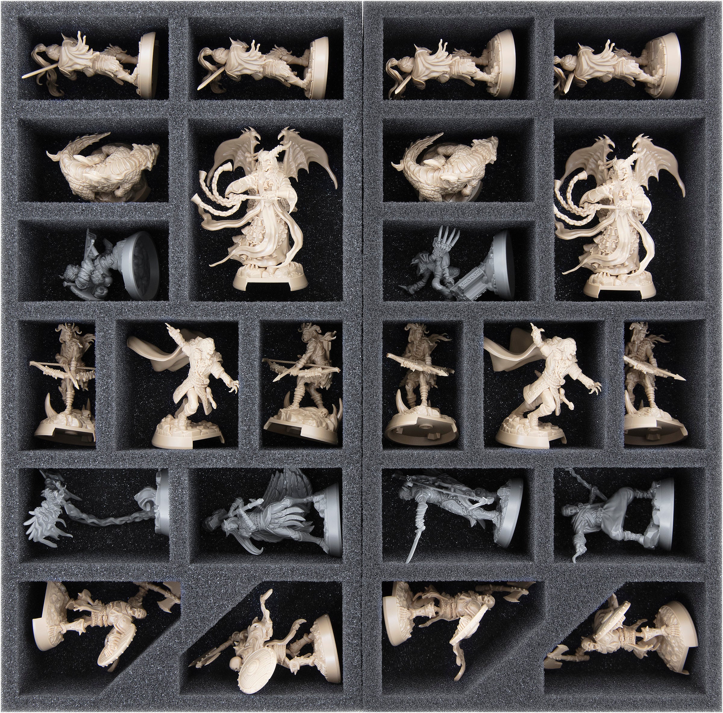 The custom-fit cut compartments help with sorting and also ensure that nothing slips during transport. The intricate details of the miniatures are reliably protected from damage. If you've painted your models, you can be sure that the colors will remain intact even after transport.