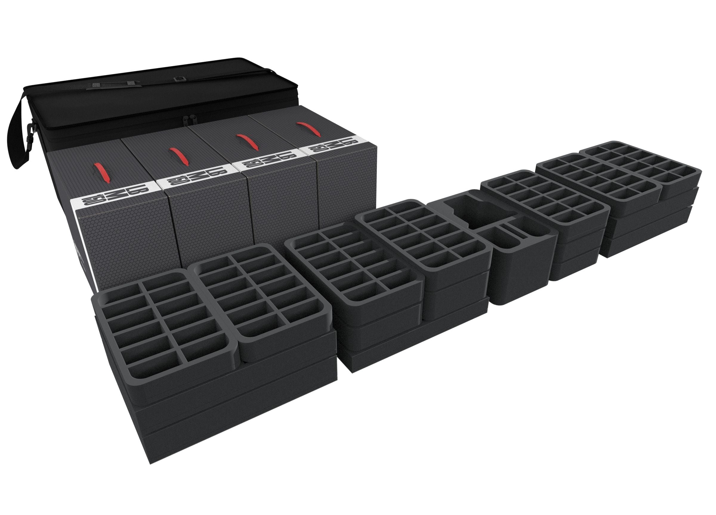 - 4 Half-Size foam trays each with 12 compartments for miniatures (HSMECP040BO)