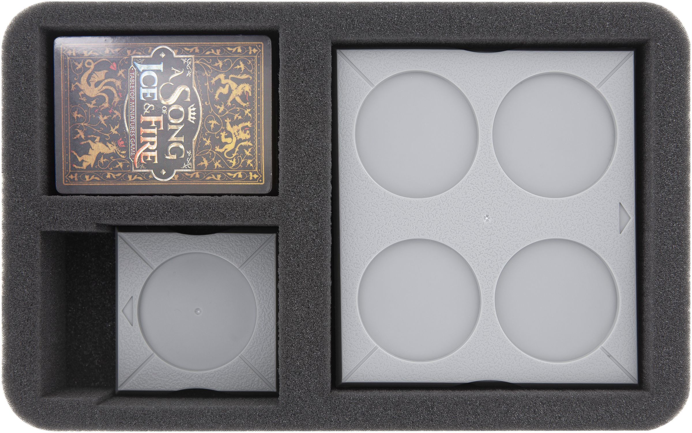7 precisely fitting foam trays offer space for all 103 miniatures of the Starter Set 'Stark vs. Lannister'. From Tyrion Lannister, to the outriders of the Starks, to 'The Mountain' Ser Gregor Clegane, every miniature gets the suitable compartment.