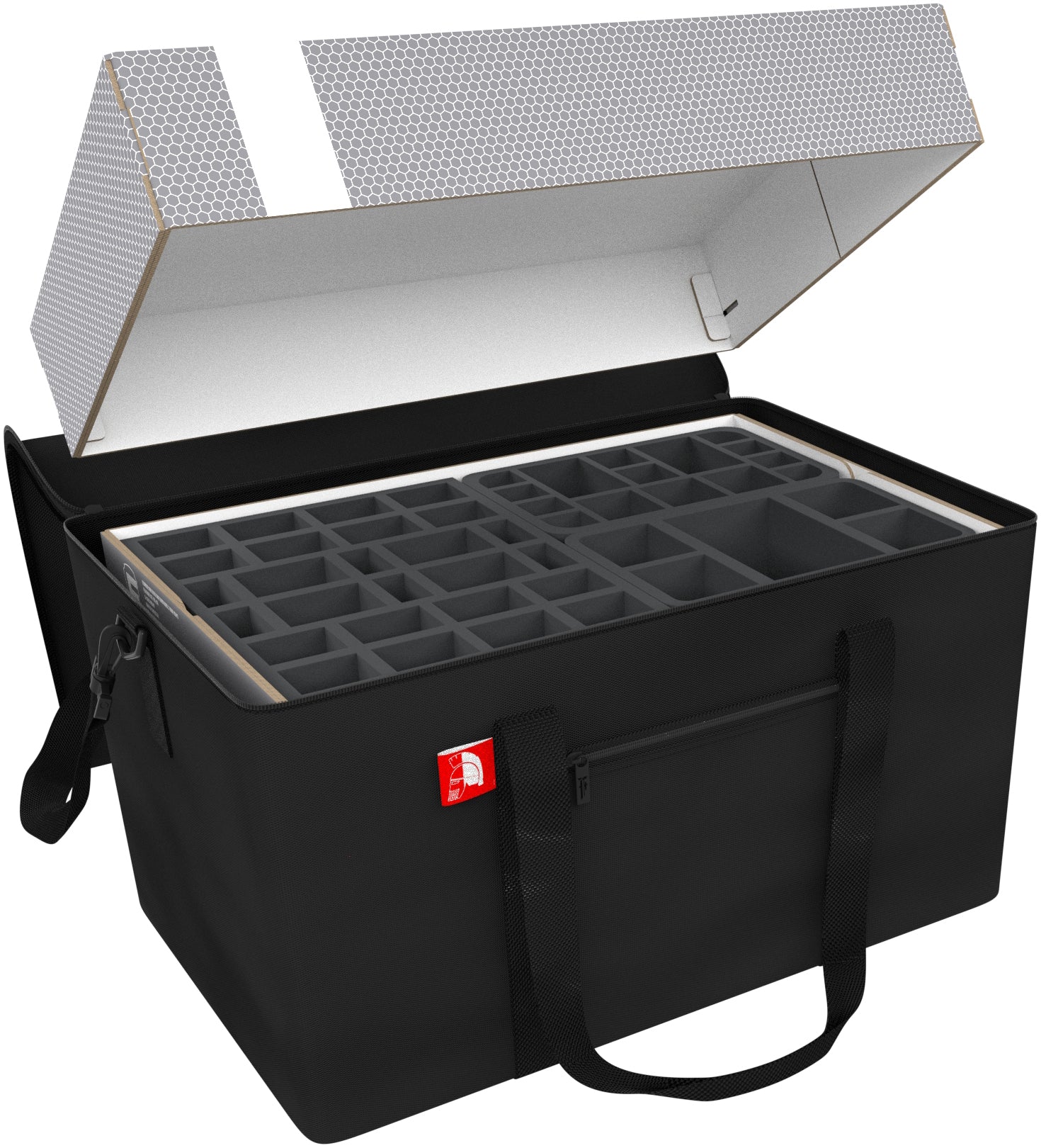 In this spacious Feldherr Transporter bag, including Storage box DSLB310 are your miniatures optimally protected. In the custom Feldherr foam trays you can safely transport up to 125 warrior figures and 2 tanks to the battlefield.