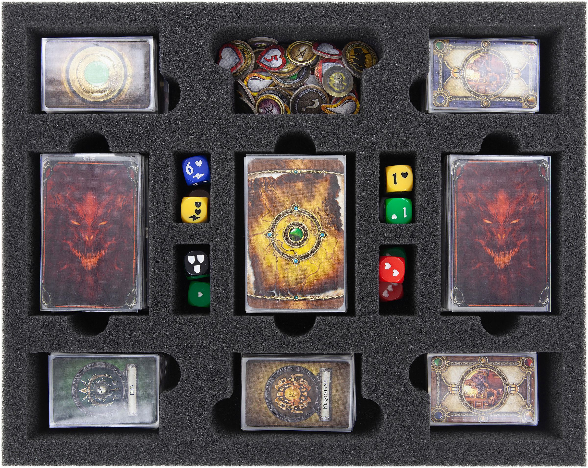 • 1 Full-Size foam tray with 13 compartments für cards, tokens and dice (FSLG050BO)