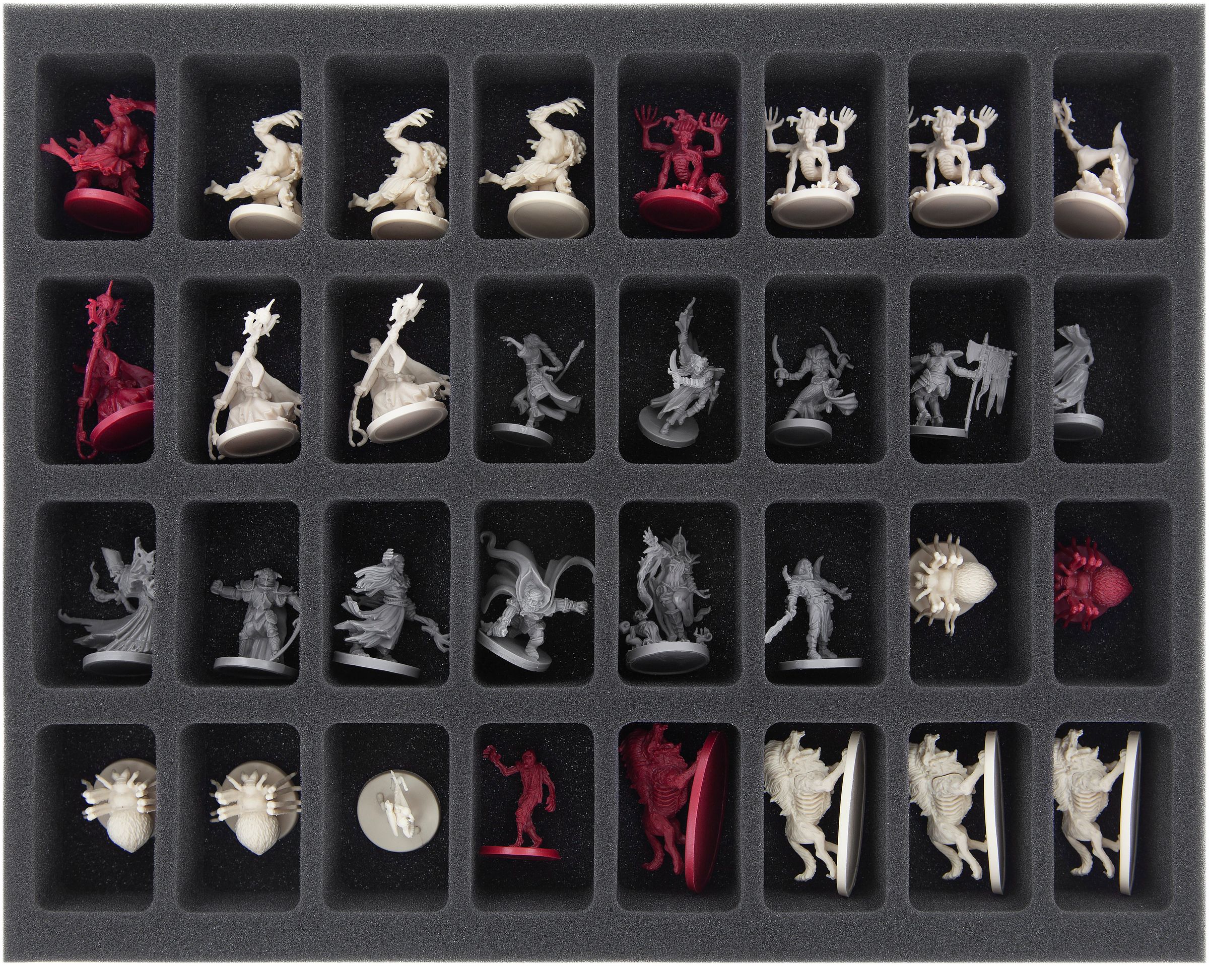 • 1 Full-Size foam tray with 32 compartments for miniatures (FSMEDS040BO)
