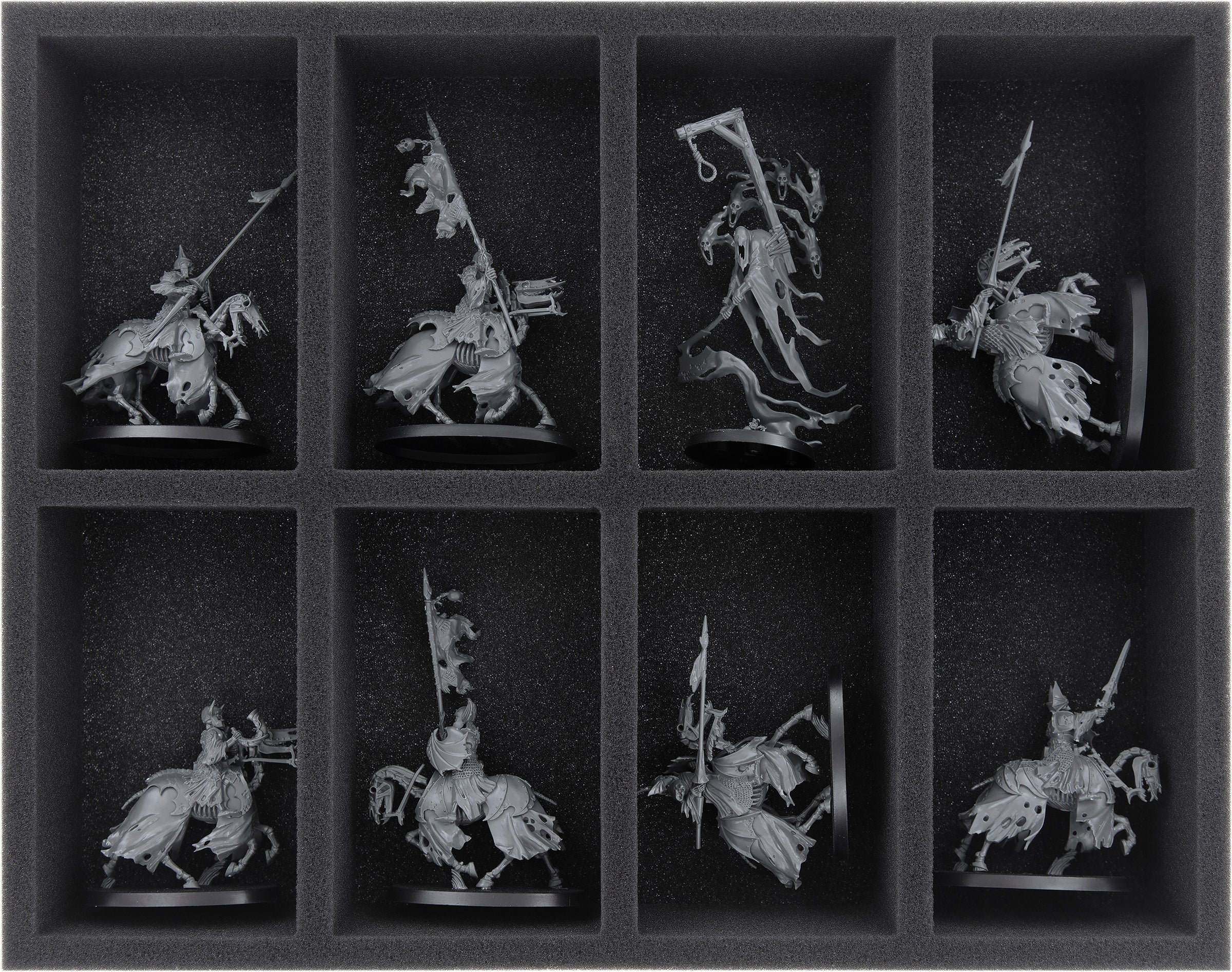 On this Full-Size foam tray you have space for up to 8 miniatures of your undead army. The insert is especially suitable for storing the Black Knights and the Hexwraiths, for example.