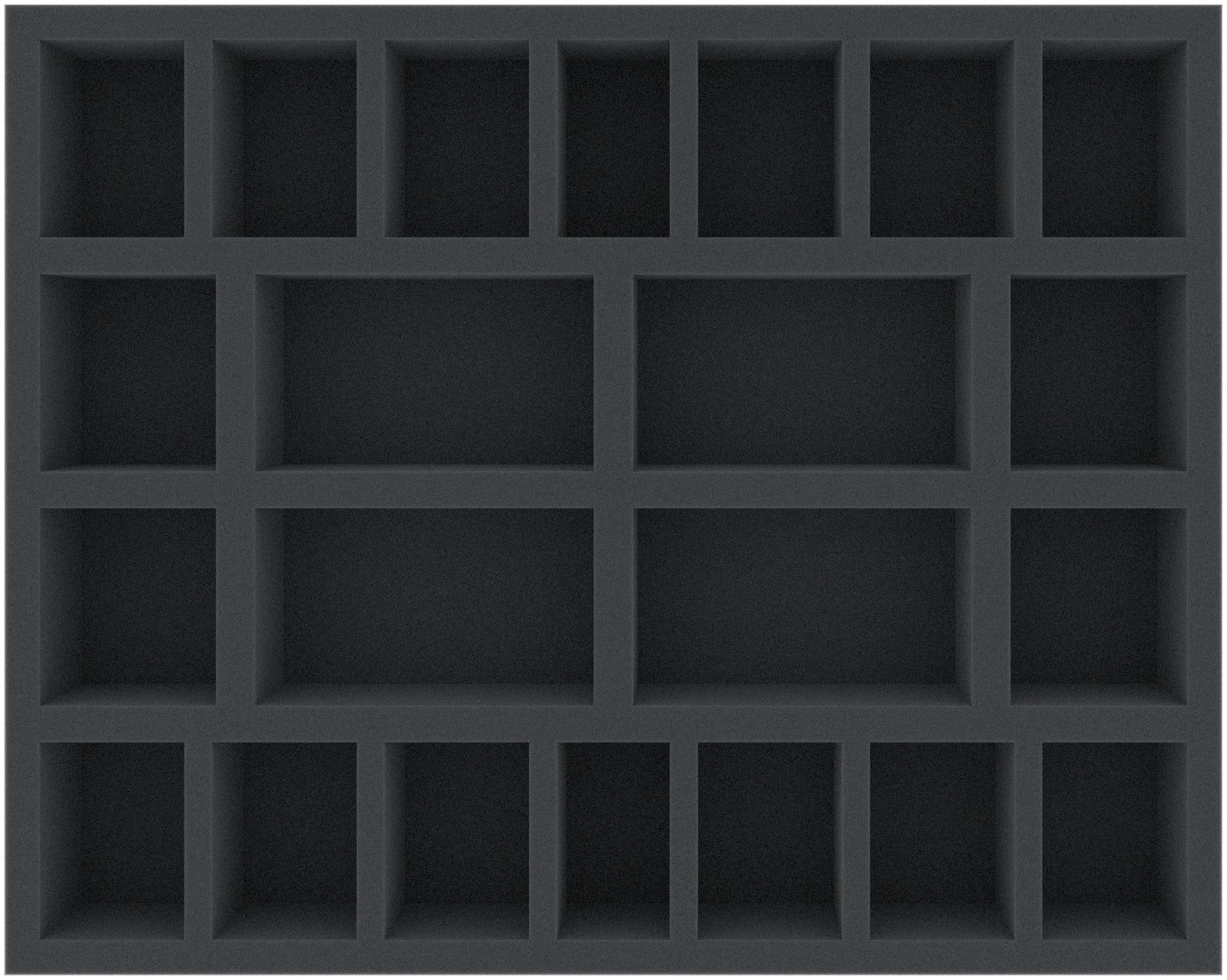 The Full-Size foam tray has the dimensions: 375 mm x 245 mm x 50 mm total height (40 mm usable height + 10 mm foam base).