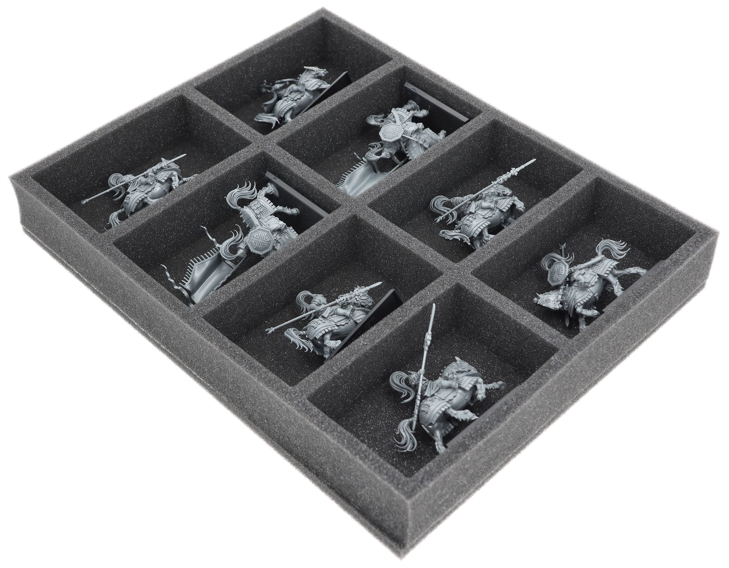 On this Feldherr foam tray you have space for up to 8 miniatures of your army. The insert is especially suitable for storing the Jade Lancers and similar sized models.