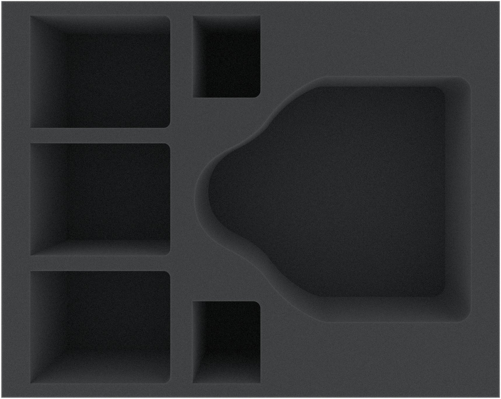 The Full-Size foam tray has the dimensions: 345 mm x 275 mm x 100 mm total height (90 mm usable height + 10 mm foam base).