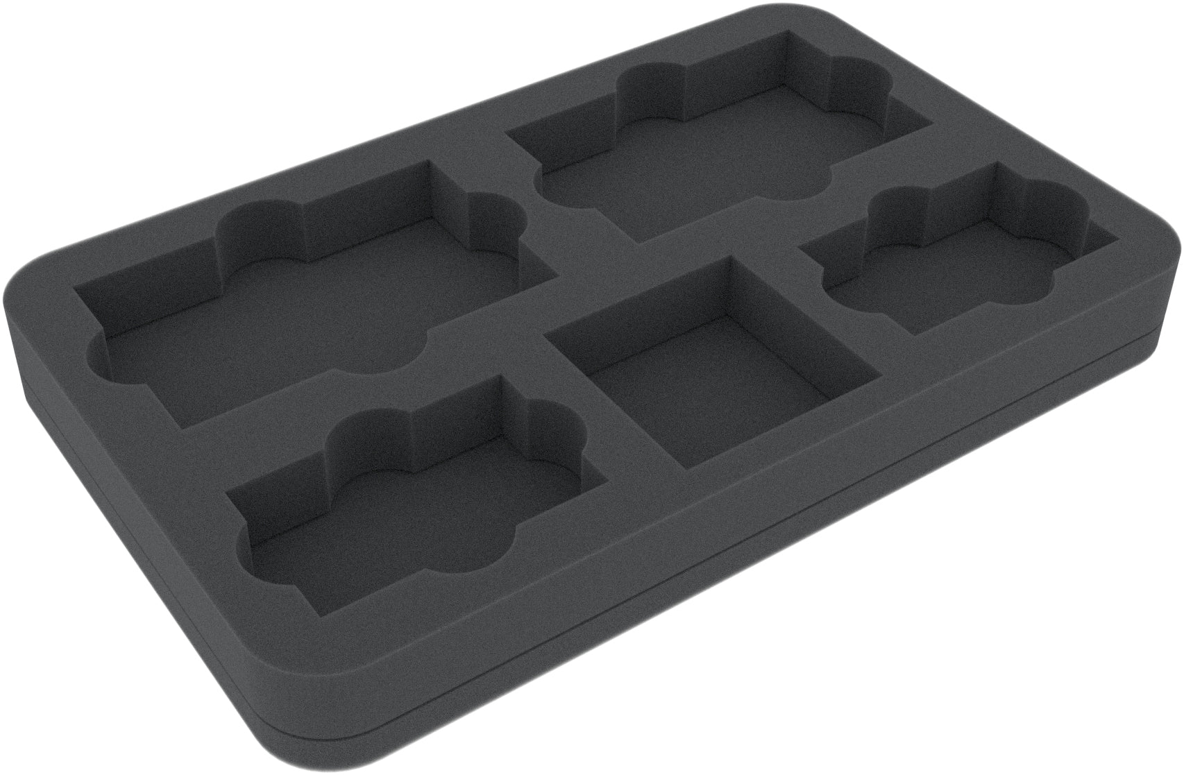 On this Feldherr Half-Size foam insert you can store your plastic bases neatly and well protected. The insert has four tailor-made compartments for two bases for small ships (43 mm x 71 mm) and two bases for medium-sized ships (63 mm x 102 mm).