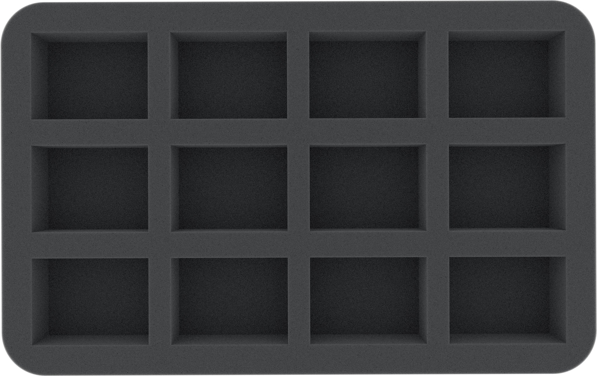On this Half-Size foam tray you have space for up to 12 miniatures of your army. The insert is especially suitable for storing miniatures on 25 mm base.