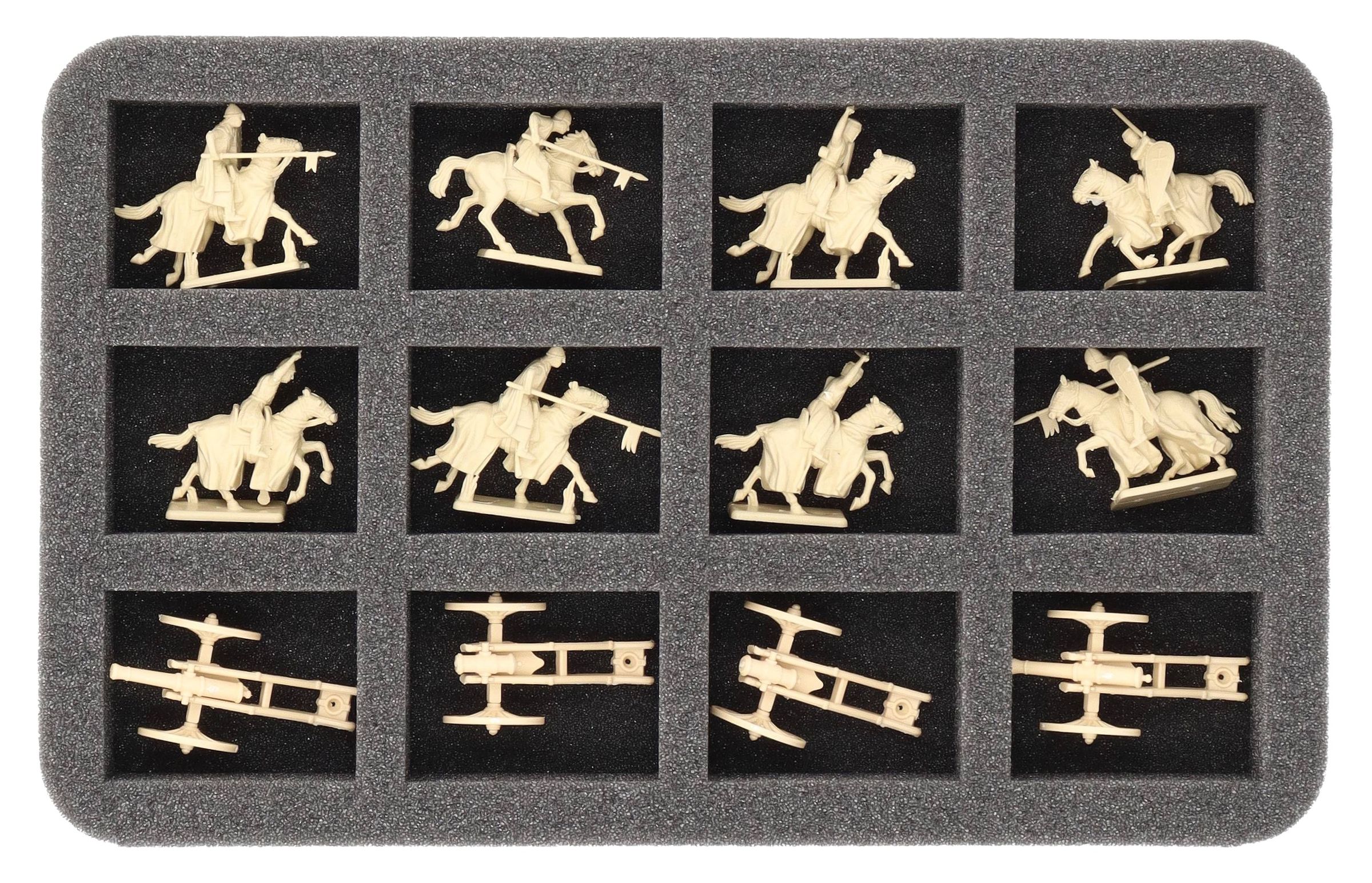 This Feldherr Half-Size foam tray has 12 same-sized compartments for the clear and safe storage of wargaming miniatures in scale 1:72 (20 mm).
