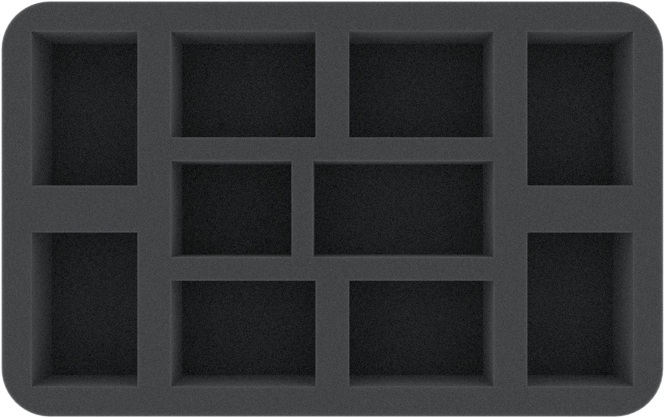 This Feldherr foam tray with ten compartments gives larger miniatures on bases up to 40 mm sufficient space. In addition to standard infantry (e.g. Namarti Thralls / Reavers) you can also give larger or wider figures such as the Tidecaster a safe place to store.