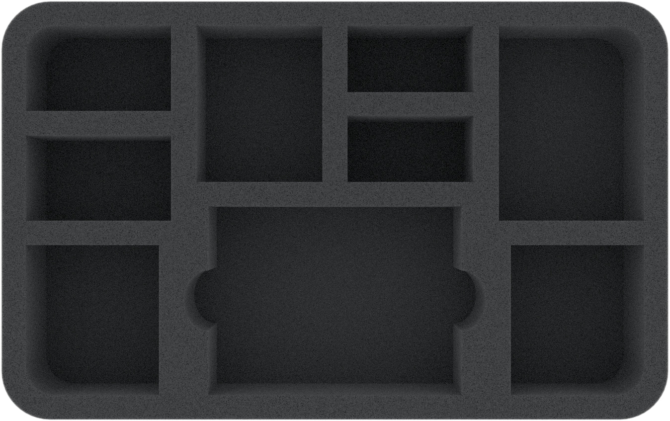 In the Feldherr Half-Size foam tray, you have space for the 4 ghost models of your warband, cards, and tokens. The precise cut ensures a secure fit so nothing can slip during transport. The high-quality foam ensures that details are well protected. Even the colors of your units will be preserved and shielded from paint abrasion and scratches.