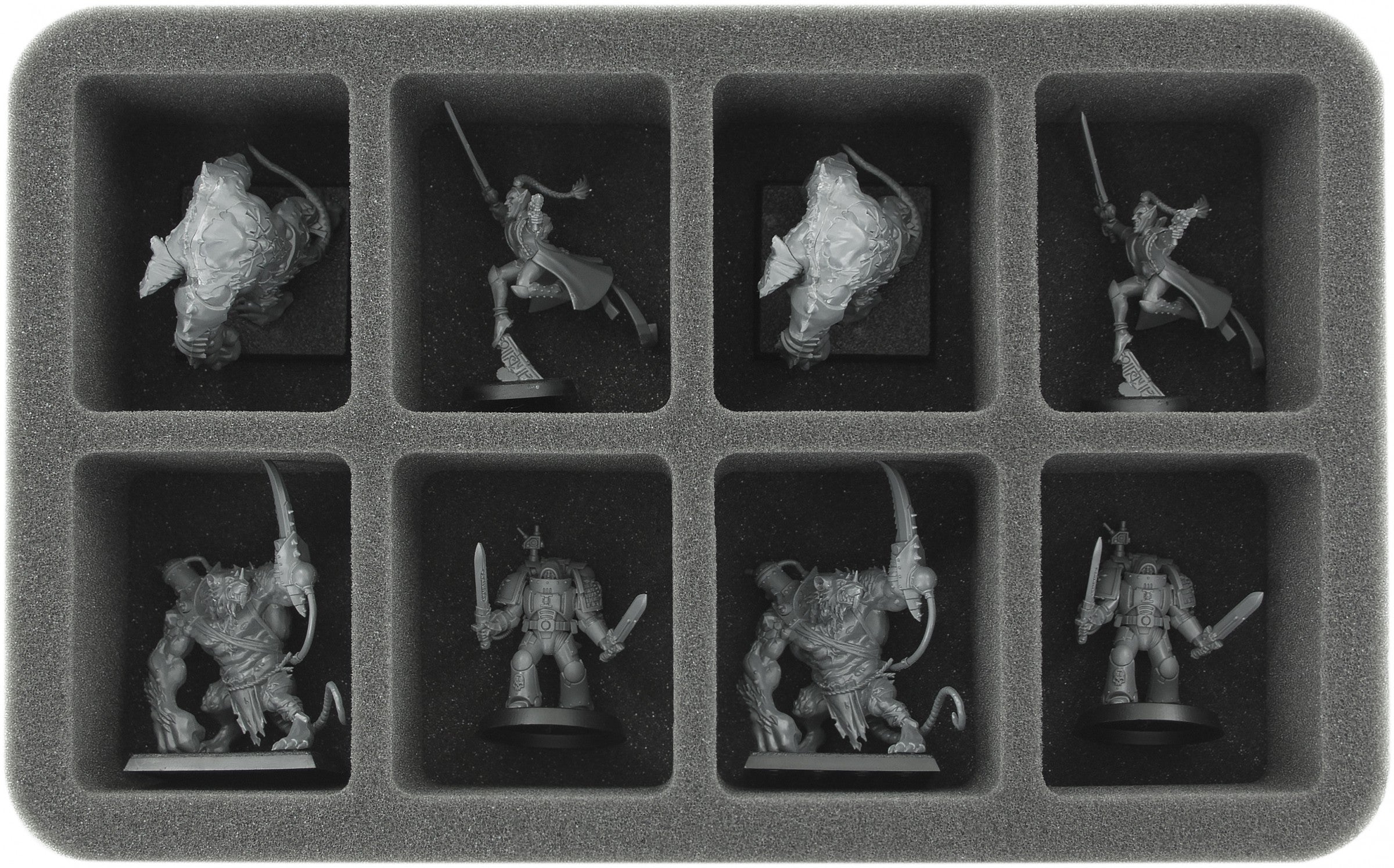 On this Feldherr foam tray you have space for up to 8 miniatures of your army. The insert is especially suitable for storing the Painboss and similar sized models.