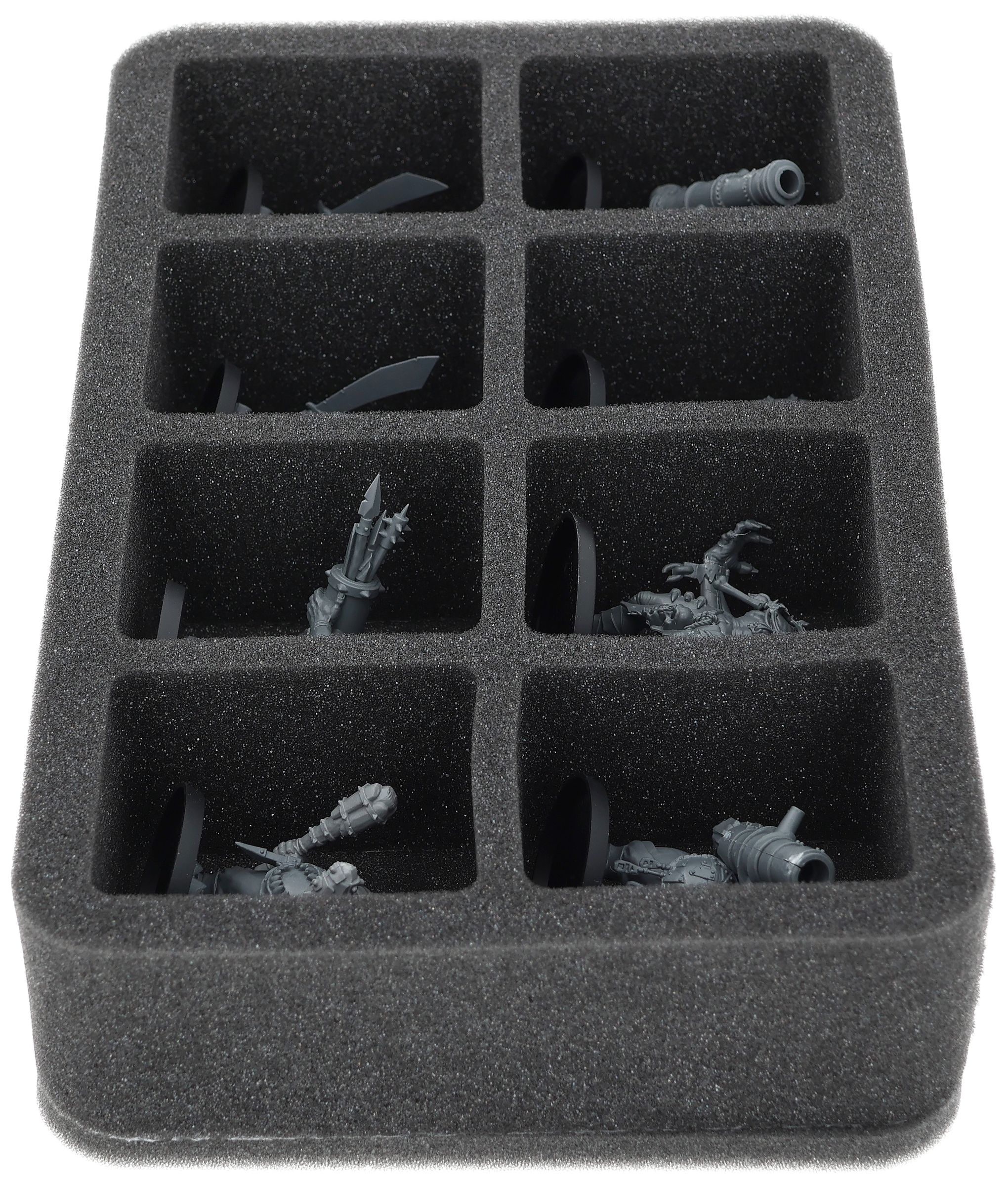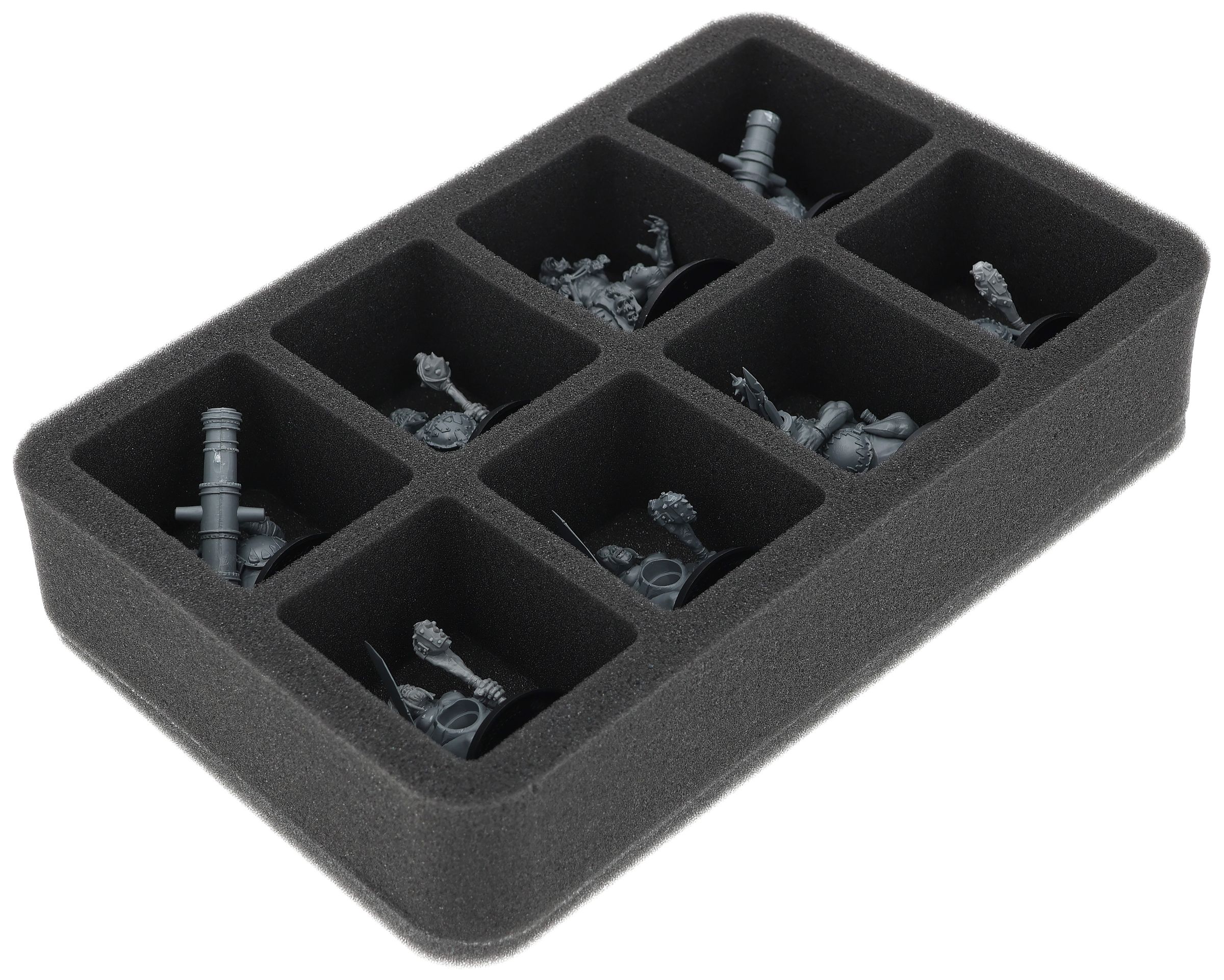 On this Feldherr foam tray you have space for up to 4 miniatures of your army. The insert is especially suitable for storing the Leadbelchers, Gluttons and similar sized models.