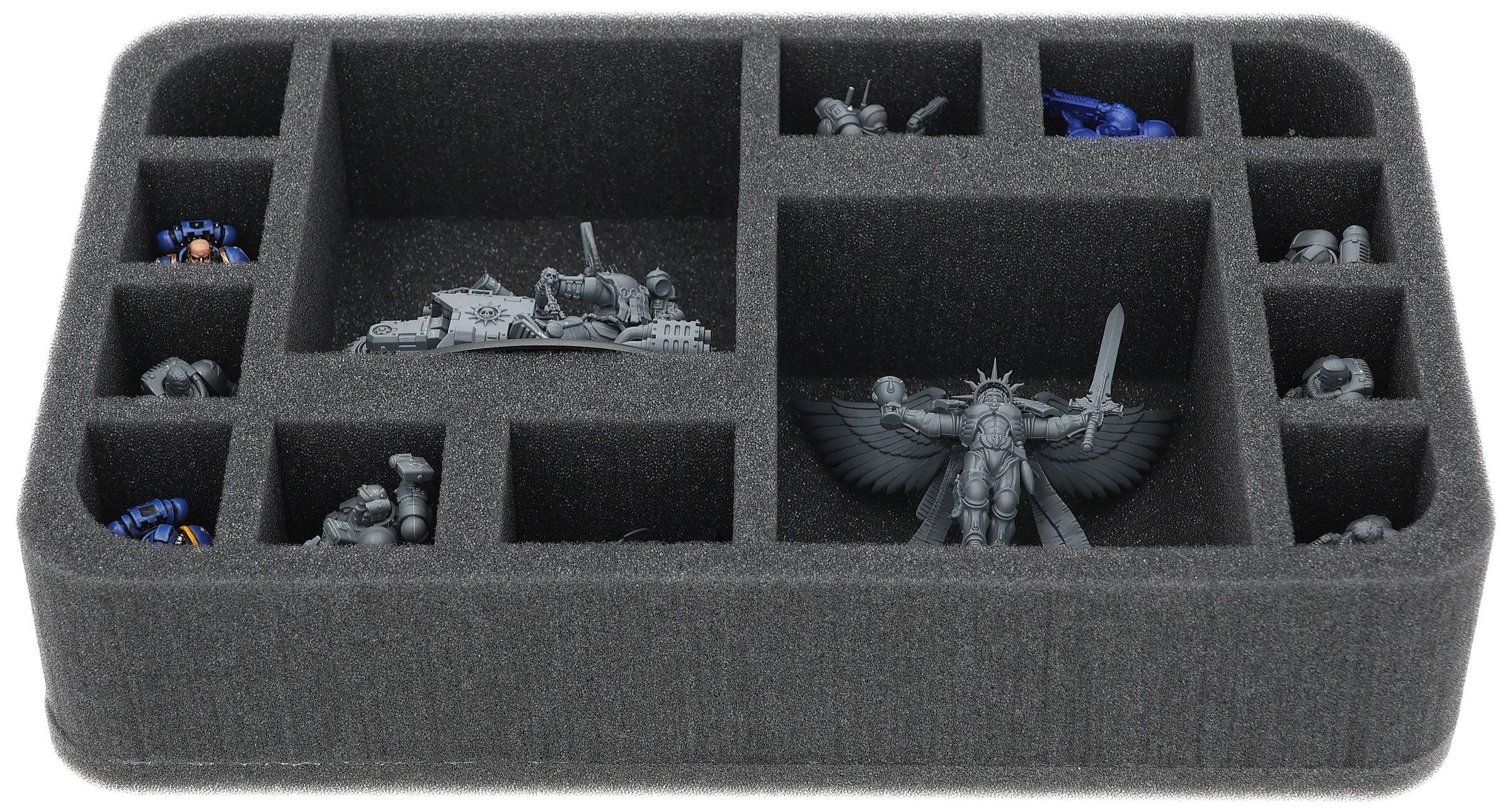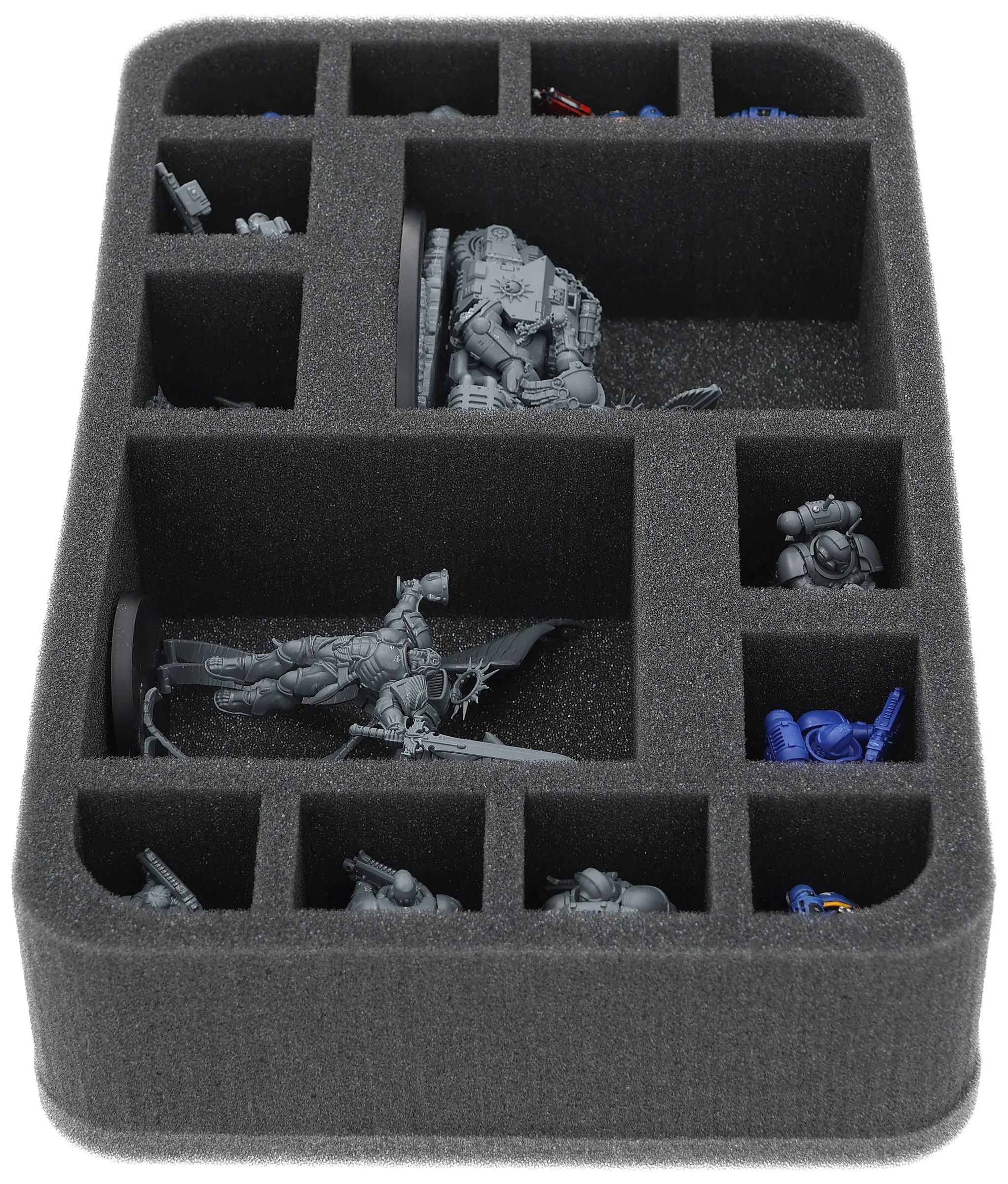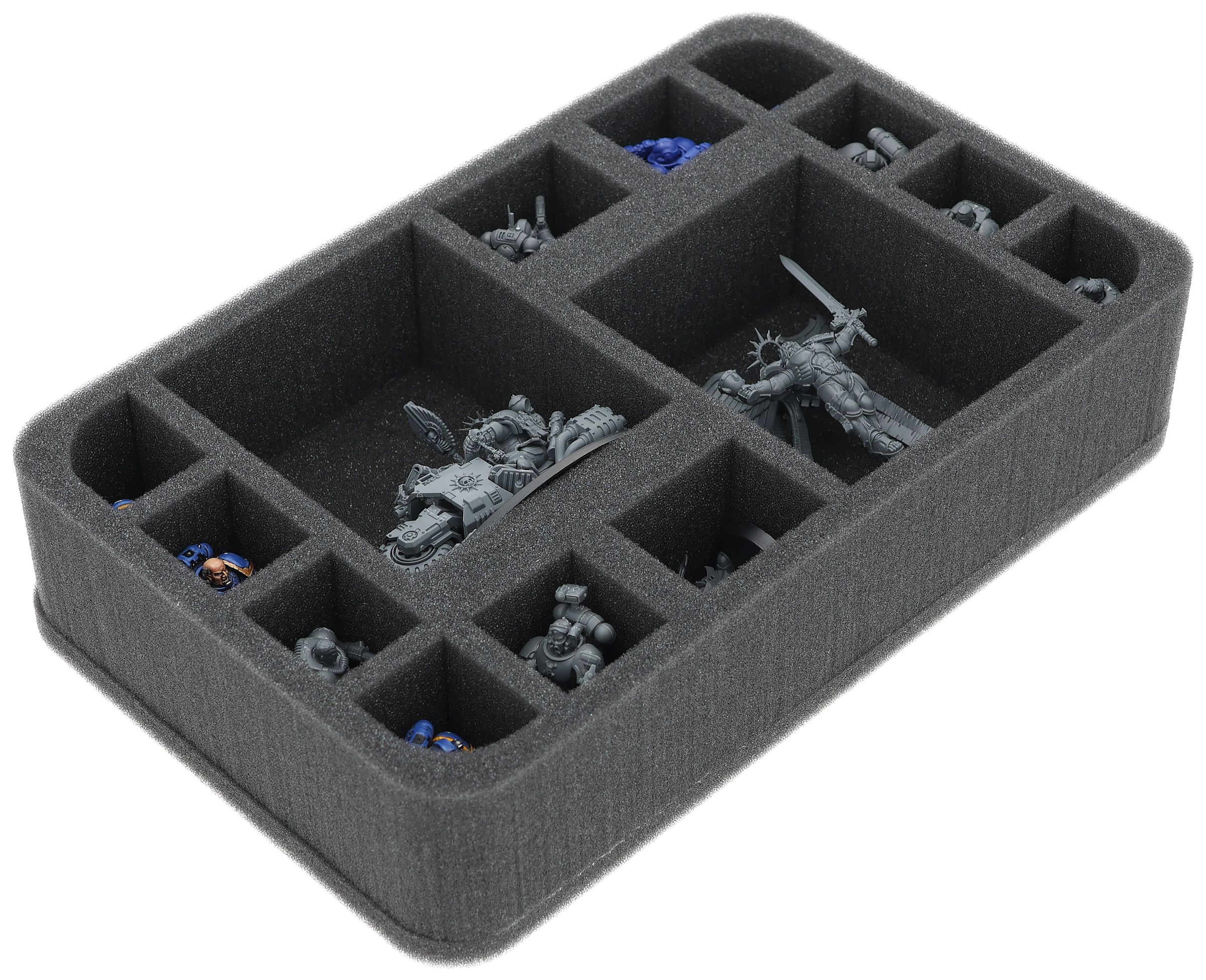 On this Feldherr foam tray you have space for up to 14 miniatures of your army. The insert is especially suitable for storing The Sanguinor and similar sized models.
