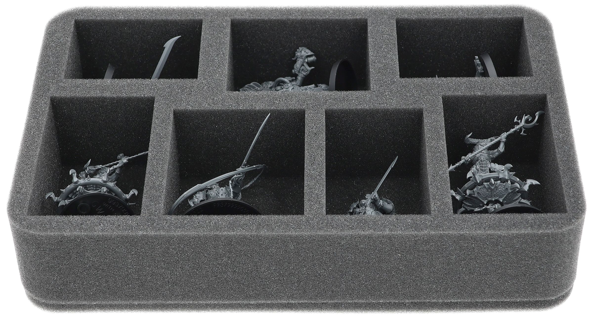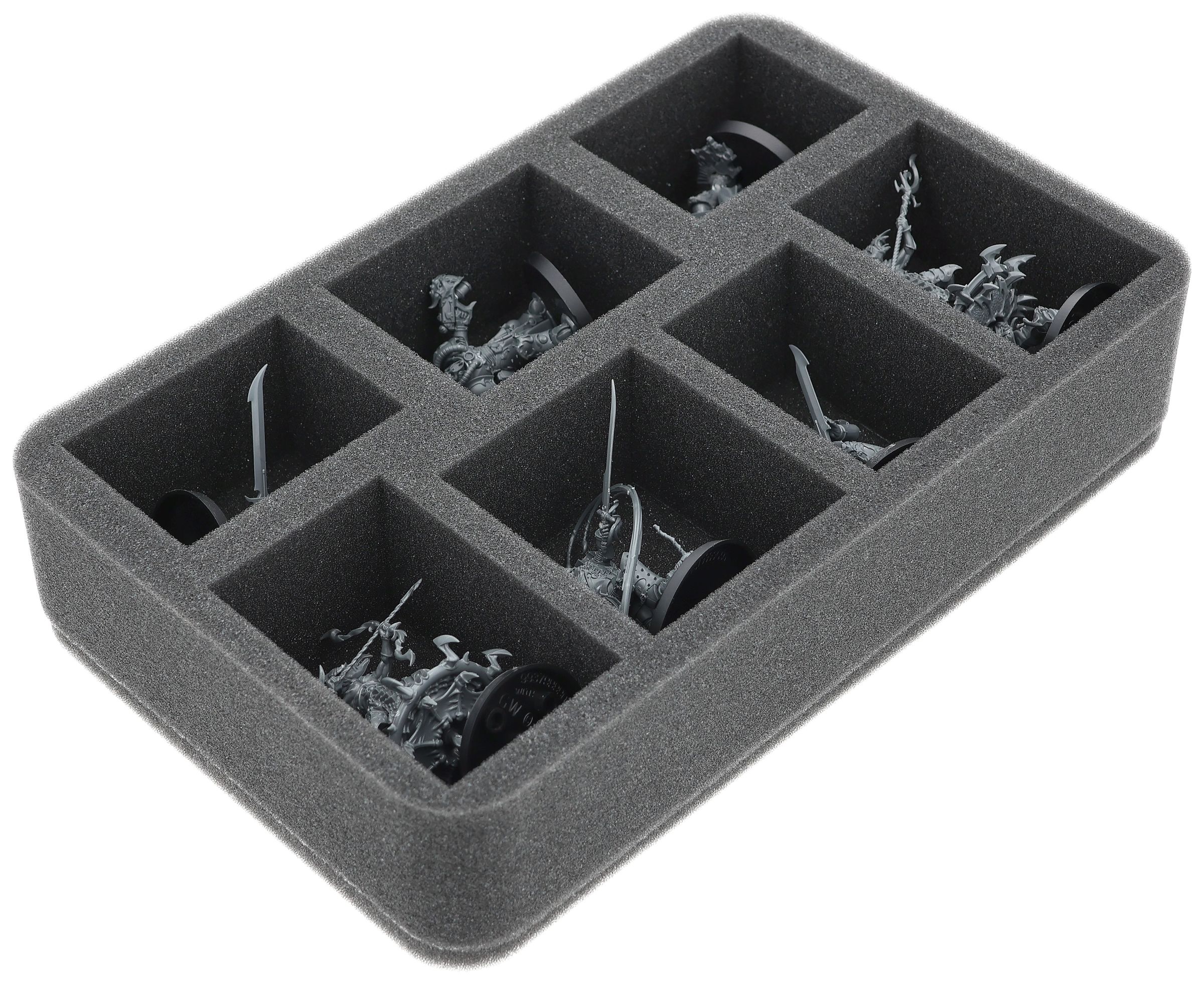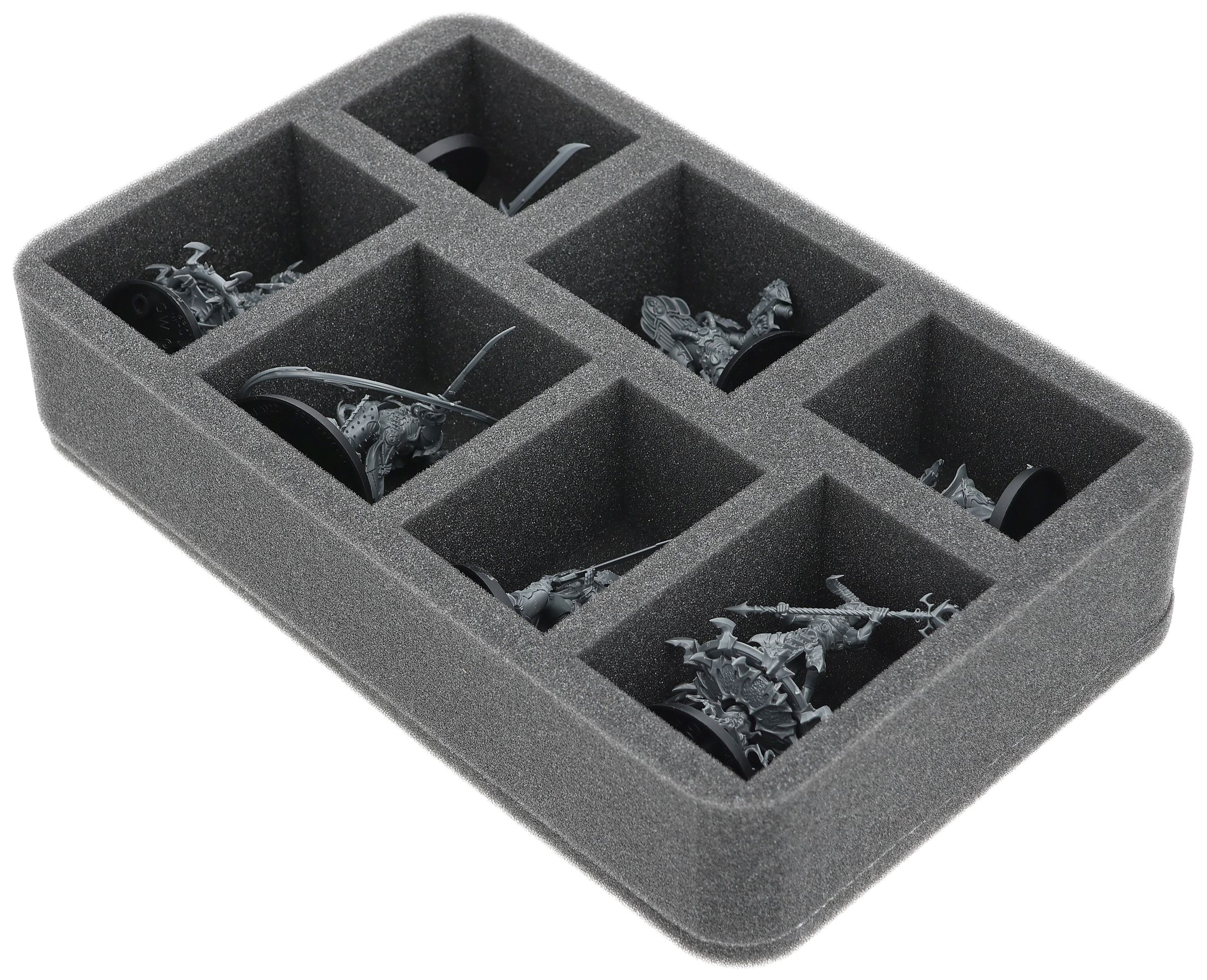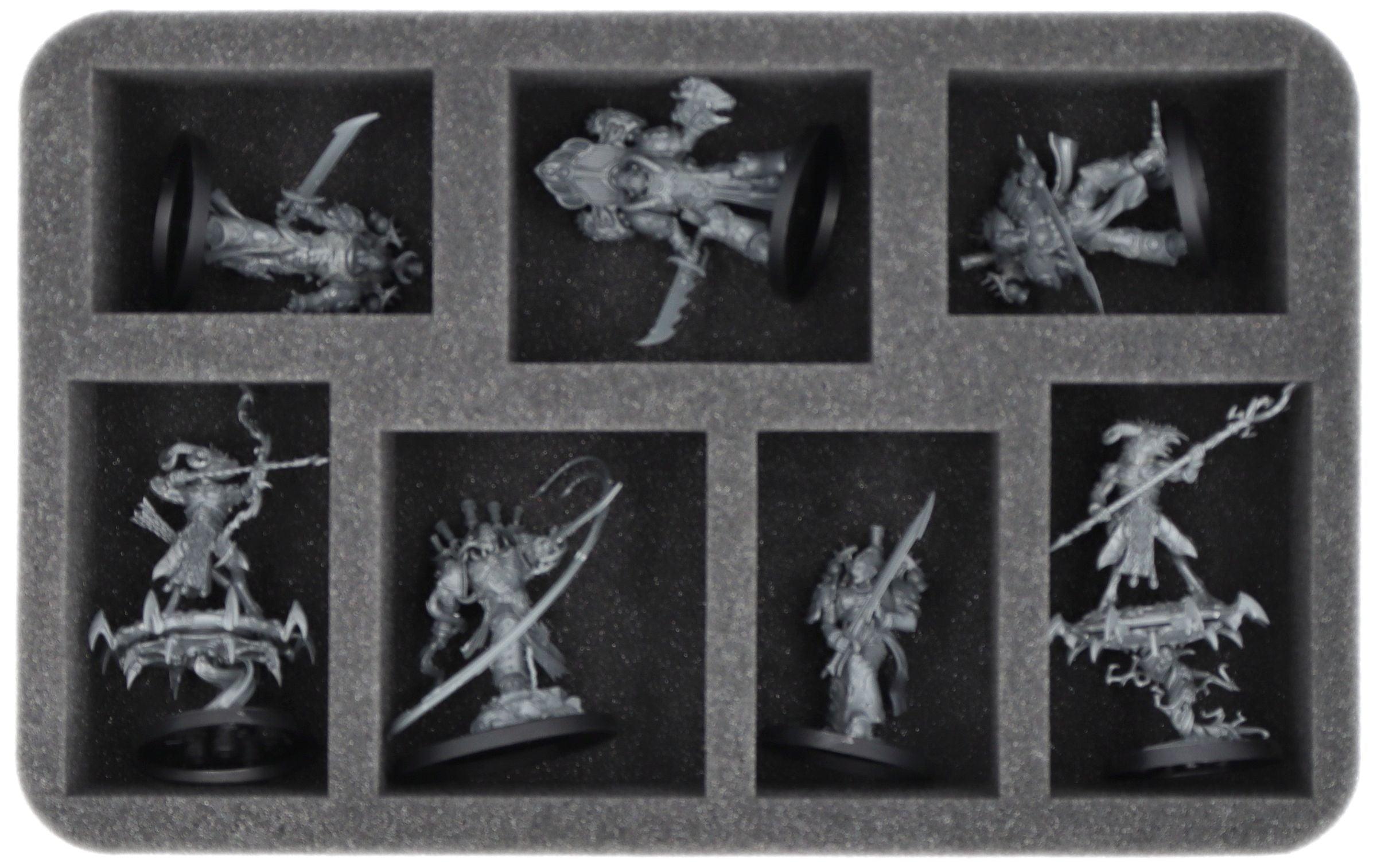 On this Feldherr foam tray you have space for up to 7 miniatures of your army. The insert is especially suitable for storing the Lucius the Eternal,Lord Kakophonist,Flawless Blades and similar sized models.