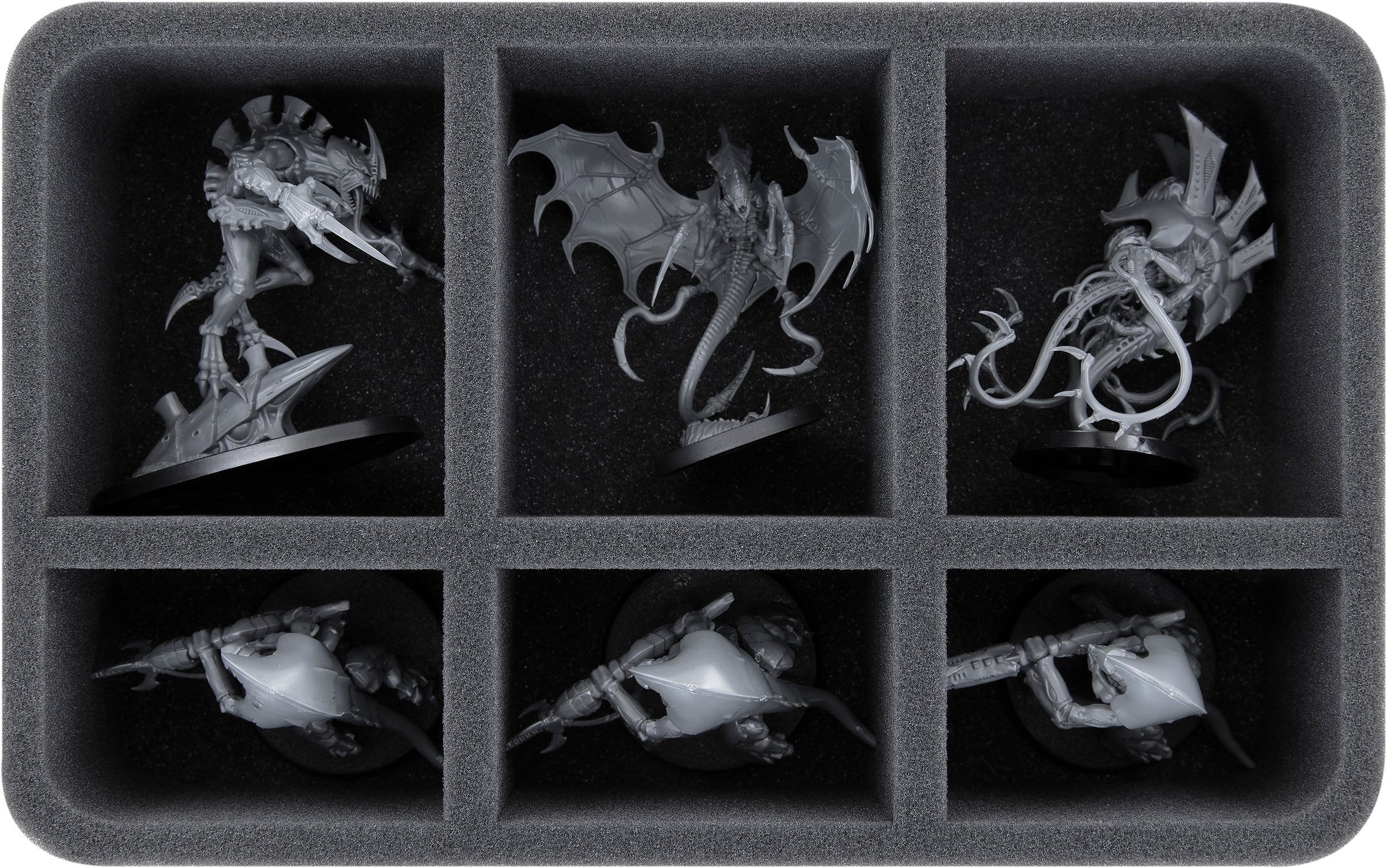 On this Feldherr foam tray you have space for up to 6 miniatures of your army. The insert is especially suitable for storing the Hive Guard, Parasite of Mortrex and similar sized models.