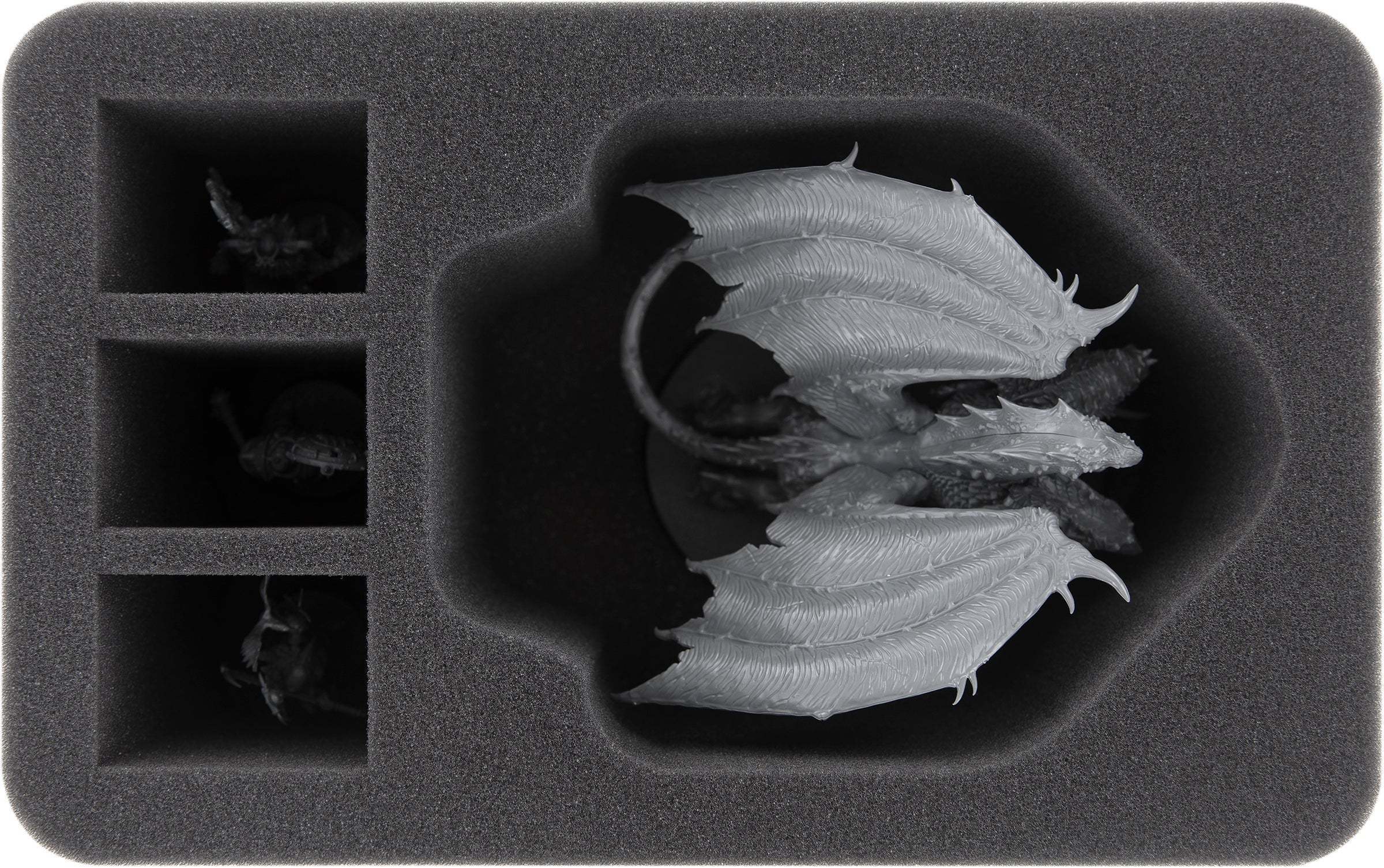 A large compartment is tailor-made for the model of the Chimera. Thanks to the precisely fitting cut, the figure remains securely in place even during transport. The soft foam not only protects the sensitive details, such as wings or tail, but also the colors of the painted miniature are protected from scratches and abrasion.