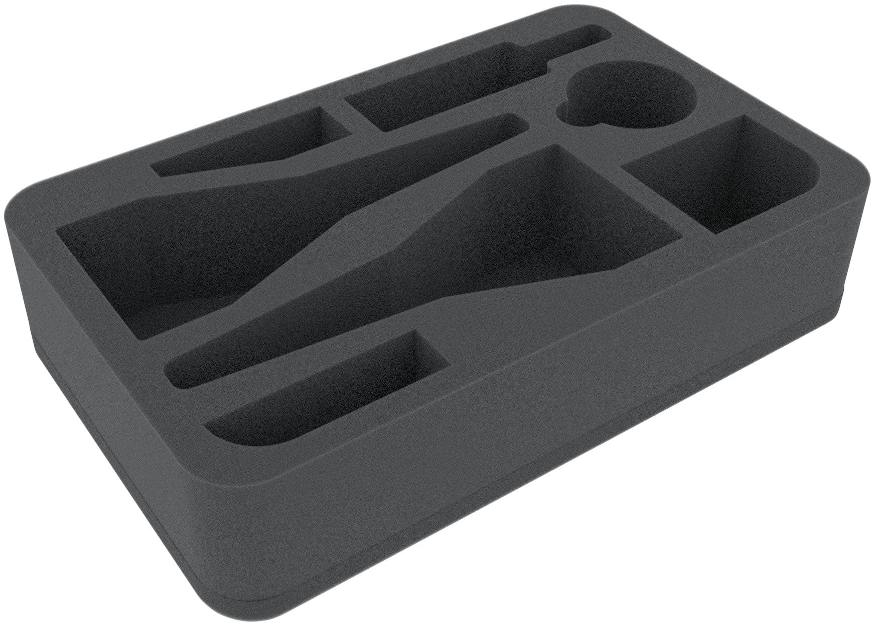 Die Feldherr Half Size (HS) Schaumstoffeinlage hat die Abmessungen: 275 mm x 172 mm x 60 mm Höhe.