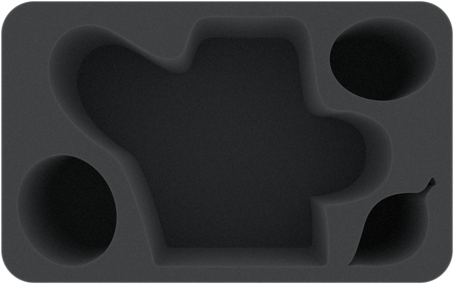 Two oval and one leaf-shaped compartment complete the insert and offer space for three more miniatures or game material.