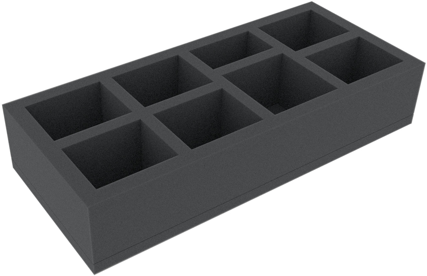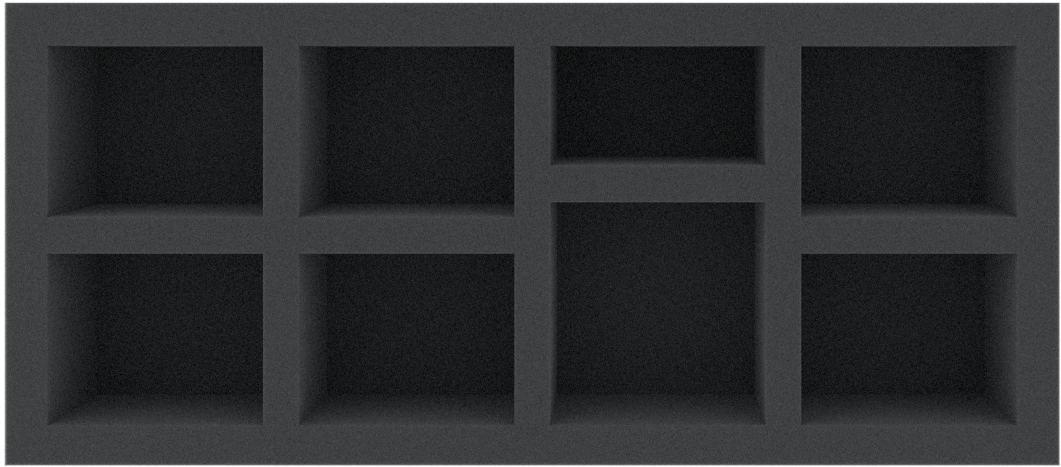 This 60 mm high foam tray is divided into 8 compartments. It is particularly suitable for the safe storage of tabletop and board game miniatures, as well as other fragile models and small parts.
