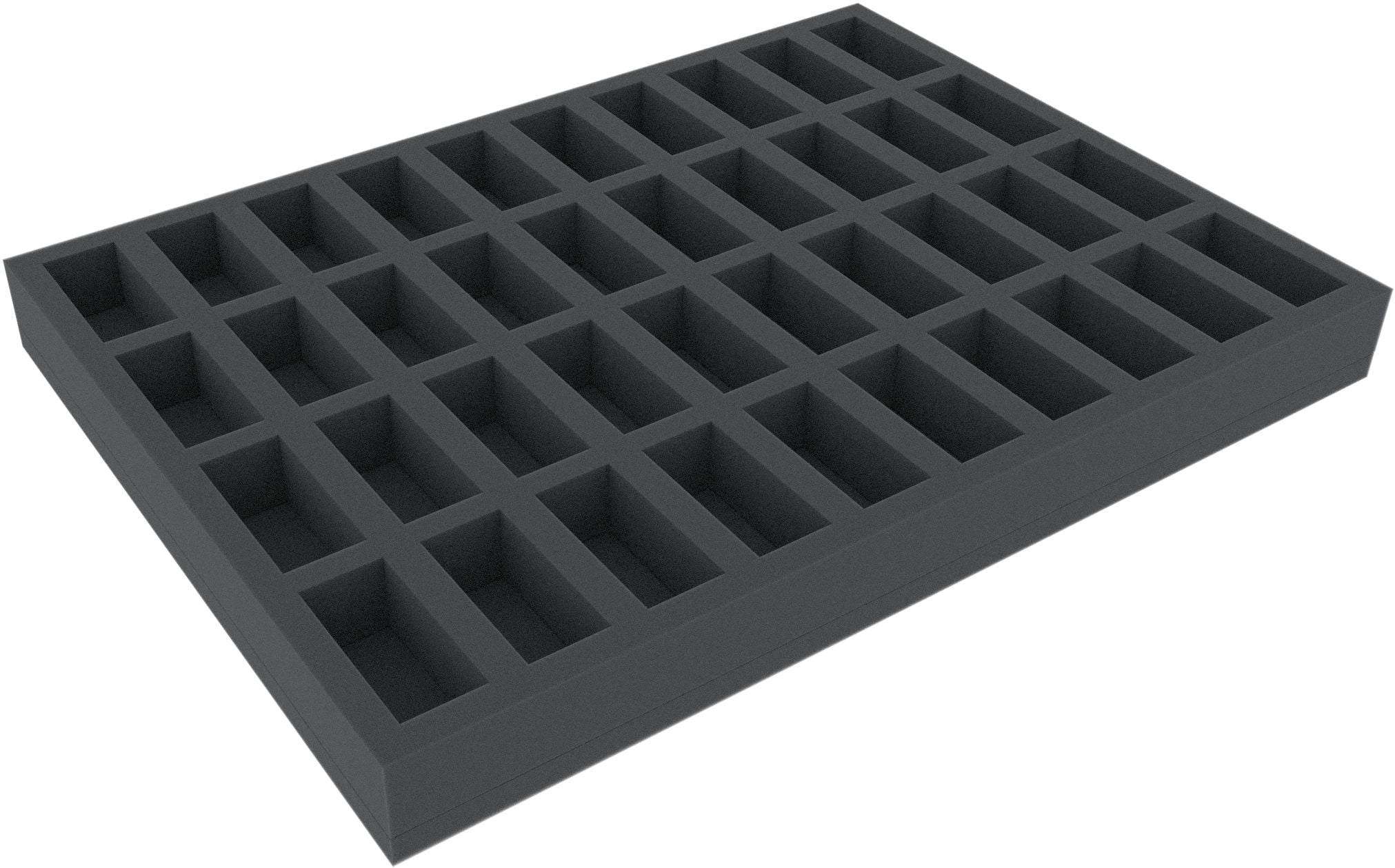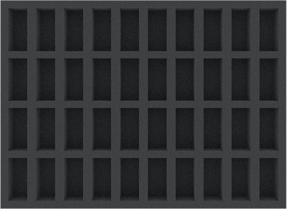 This 35 mm high foam tray is divided into 40 compartments. It is particularly suitable for the safe storage of tabletop and board game miniatures, as well as other fragile models and small parts.