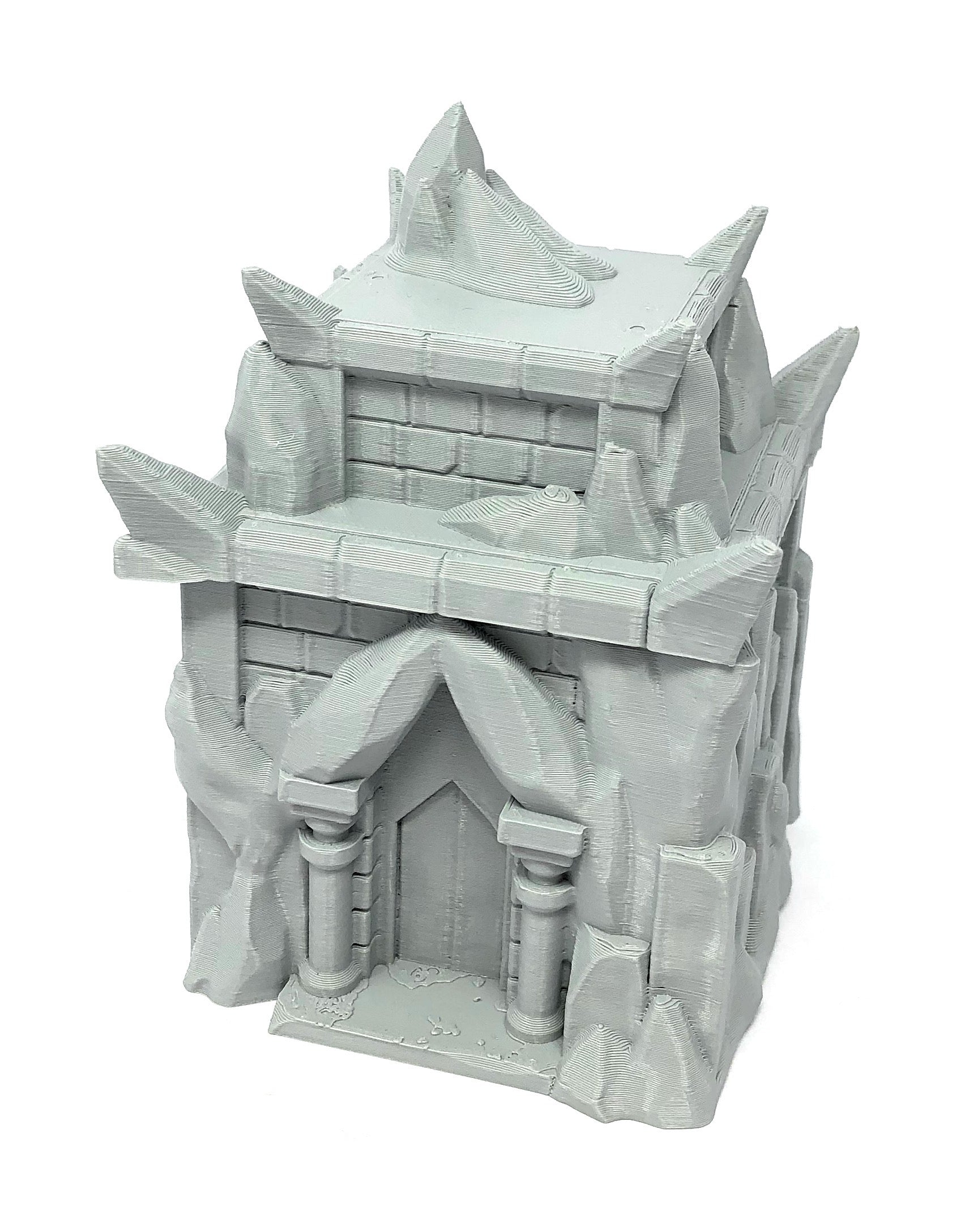 3D printed - detailed dice jail. The Dice Jail can also be used as a terrain part for your miniatures game or as a center piece for your next DnD session.