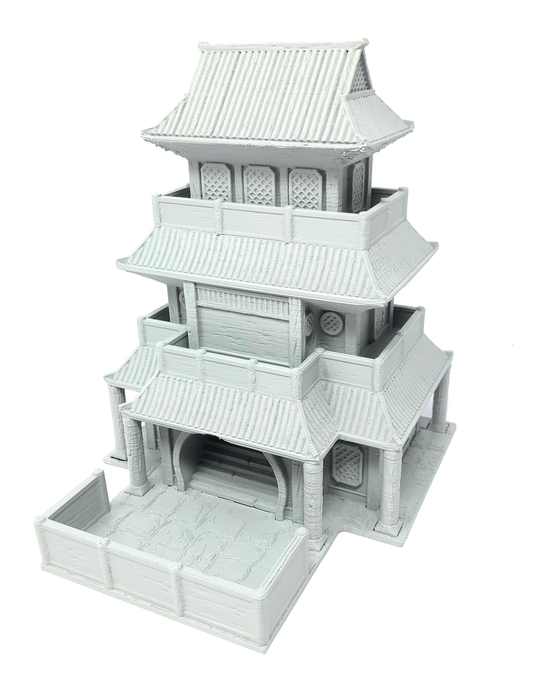 3D printed - detailed dice tower, with removable roof and exchangeable dice tray. The Dice Tower can also be used as a terrain part for your miniatures game or as a center piece for your next DnD session.